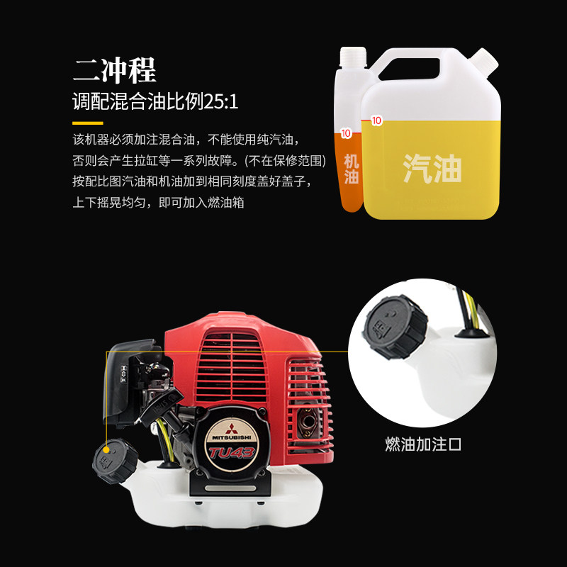 📚 三菱TU43引擎割草机小型家用除草机汽油割灌机四冲程背负式草坪机