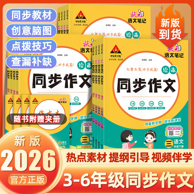 📚 26春语文笔记同步作文热点素材3-6年级同步作文提纲模版举一反三理清思路视频伴读内附夹页绿色教辅印刷清晰正版保证现货速发