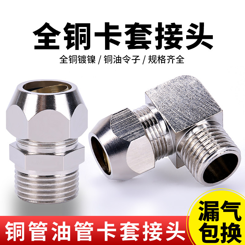 📚 铜管接头带螺纹油管PC直通卡套式直角PL弯头钢管气源管终端管接头