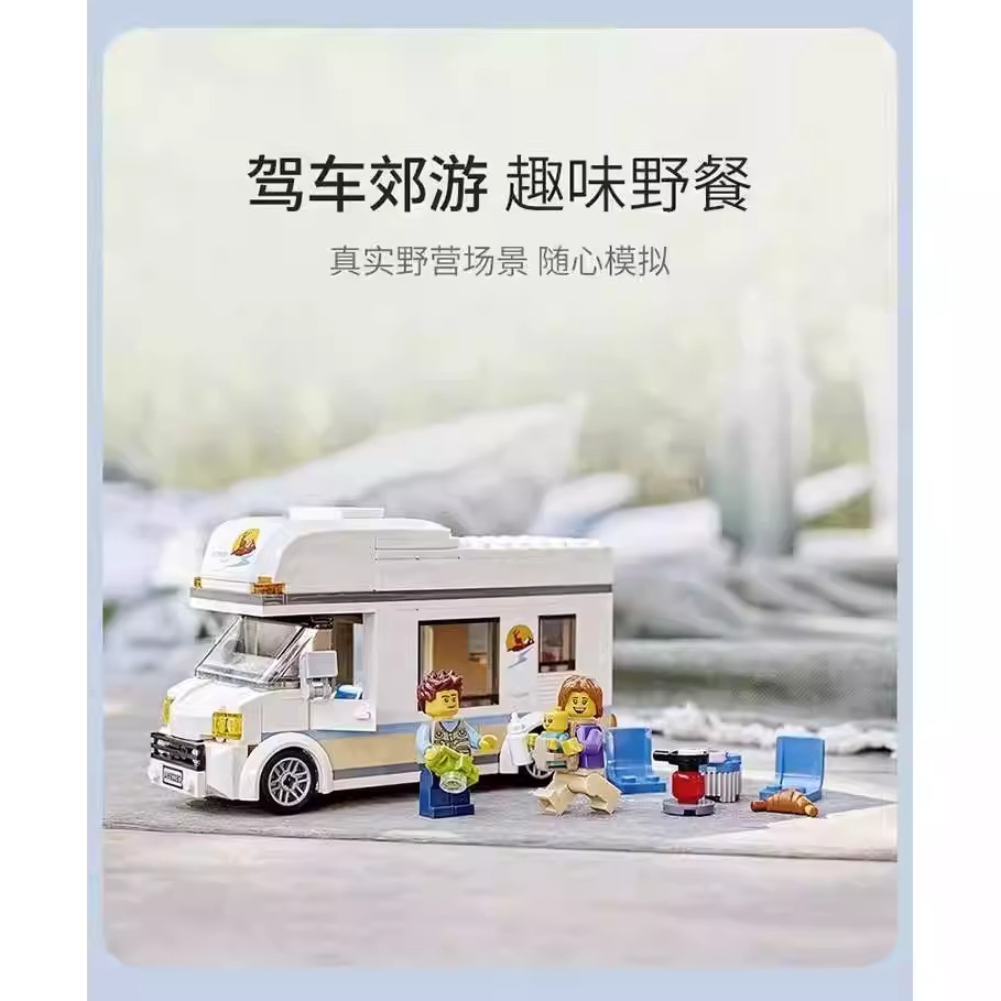 📚 城市系列假日野营房车60283中国积木益智男孩子拼装玩具礼物6岁