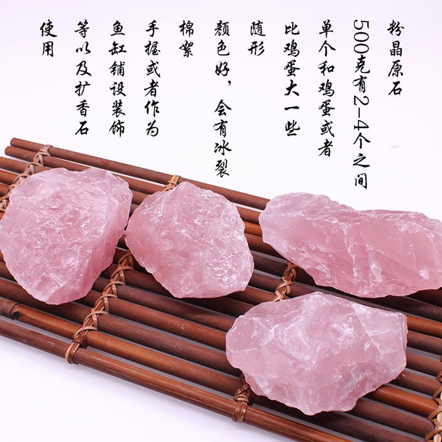 📚 一物一图天然粉水晶原石摆件真石头大块矿石毛料宝石芙蓉石粉色