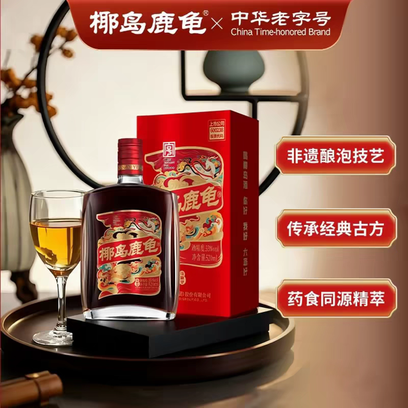 📚 椰岛鹿龟酒33度海南老字号养生酒520ml鹿酒鹿血鞭酒聚会年货送礼