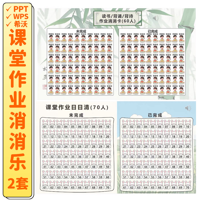 📚 作业消消乐PPT 日日打卡清除中小学早读背书点名希沃课件管理神器