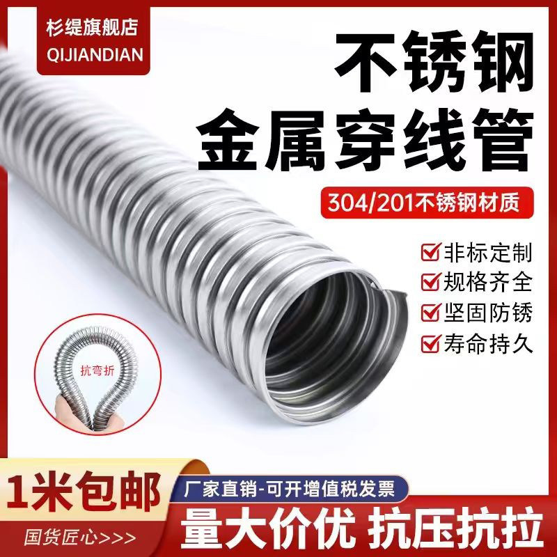 📚 304不锈钢金属穿线软管电线缆监控套管不锈钢包塑软管蛇皮波纹管