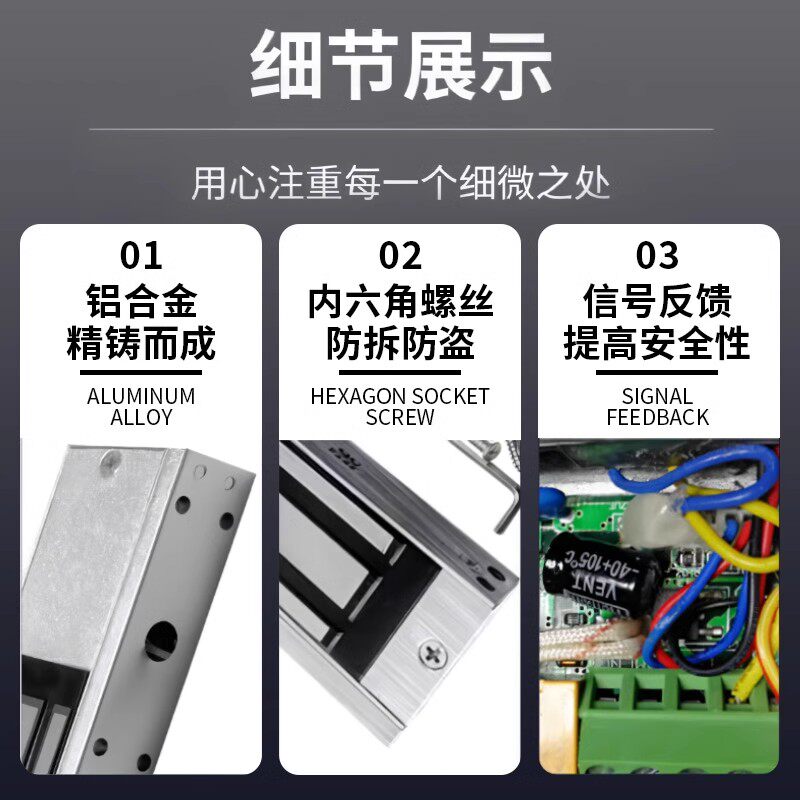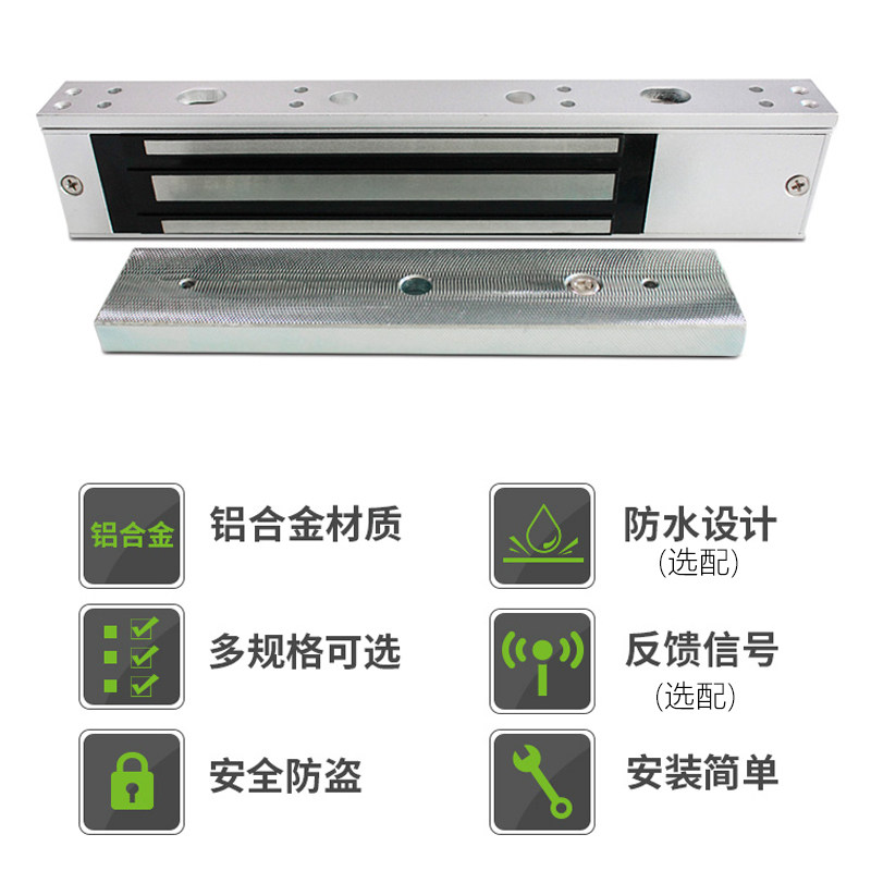 📚 磁力锁280kg单门明装双门电磁锁12V暗装防水延时玻璃门禁电控锁