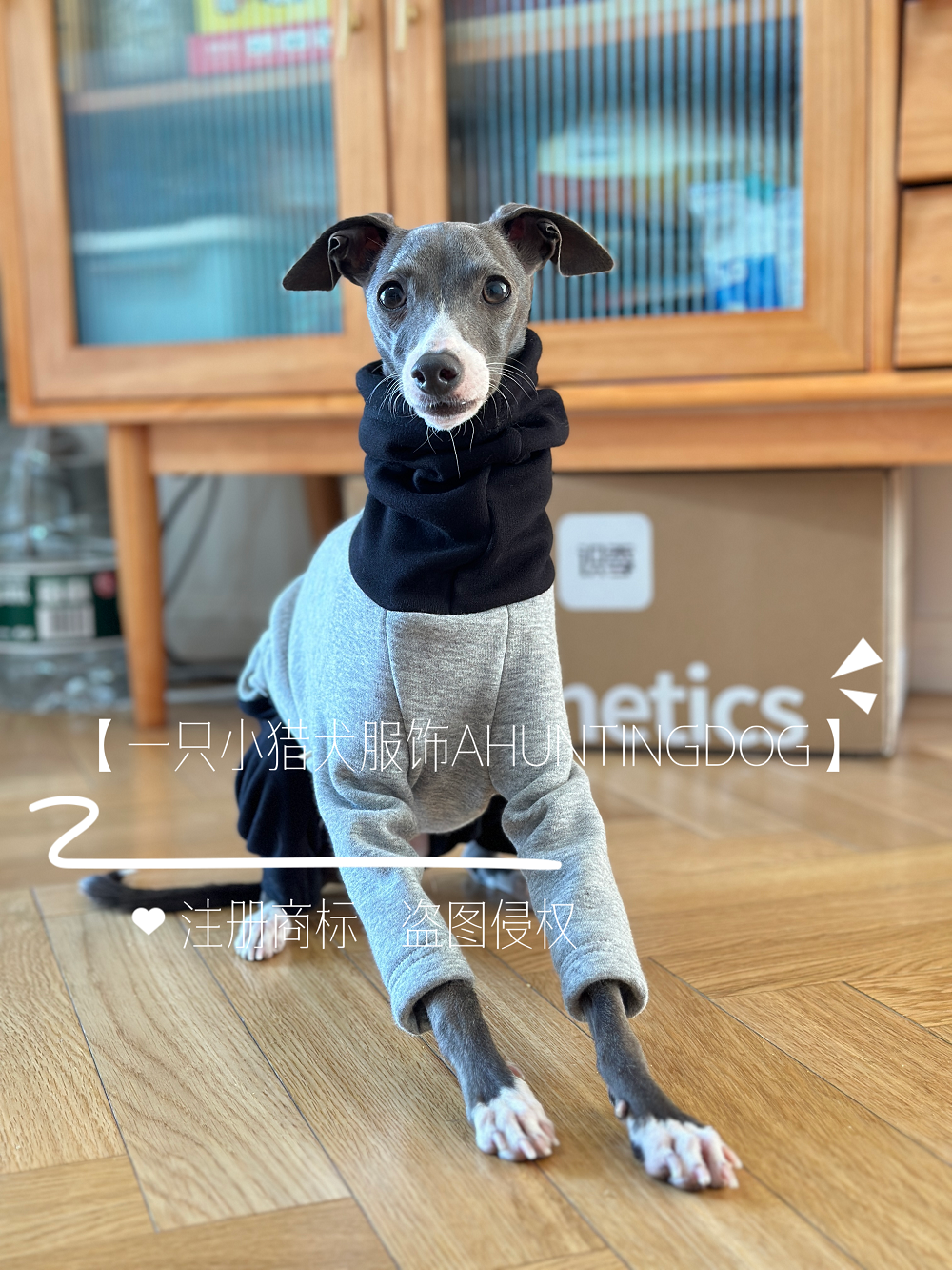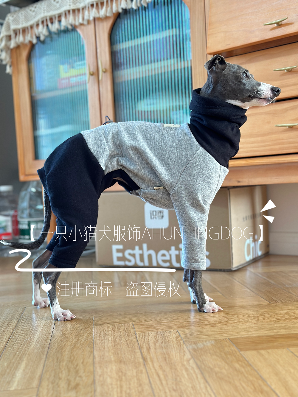 📚 一只小猎犬黑灰拼色四脚衣加绒保暖小灵缇惠比特细狗衣服