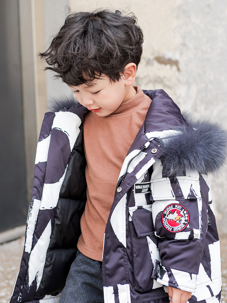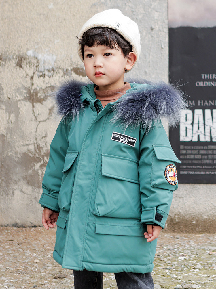📚 韦氏正品冬季儿童男童女童宝宝羽绒服外套中长款毛领厚保暖派克服