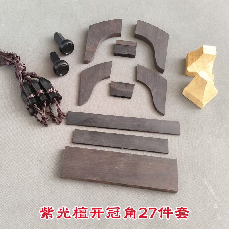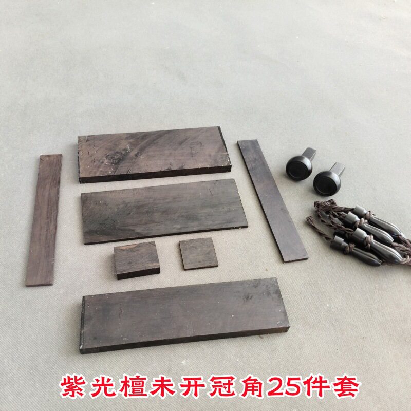 📚 紫光檀九件套冠角岳山雁足琴轸古琴入门通用配件斫琴配件25件套