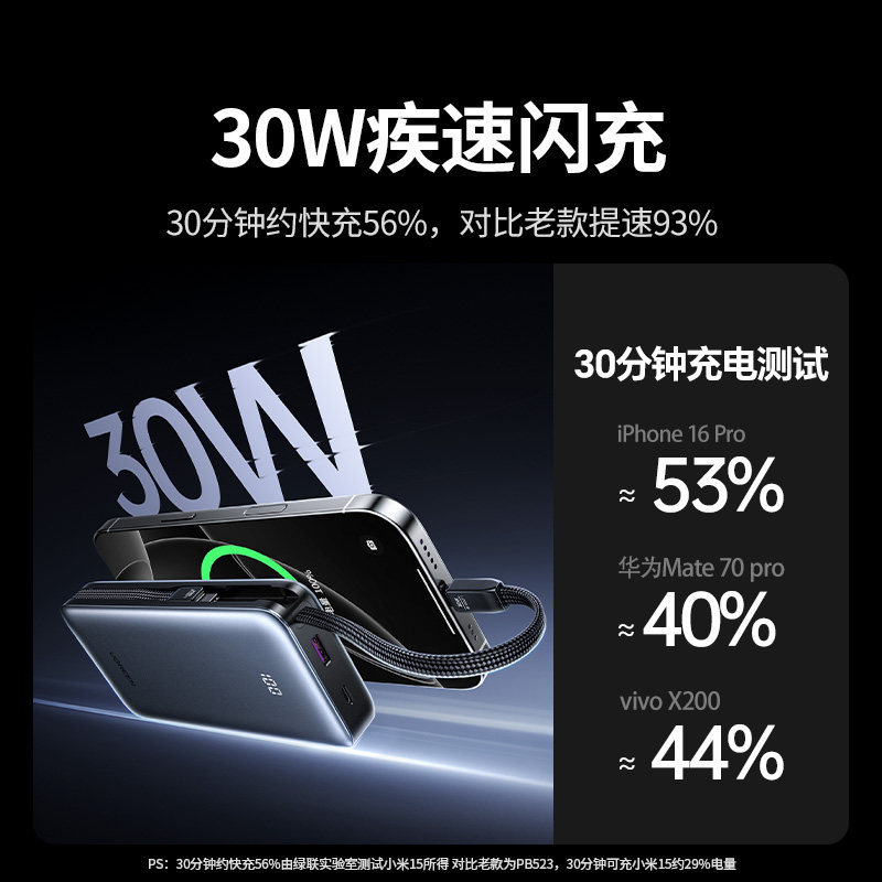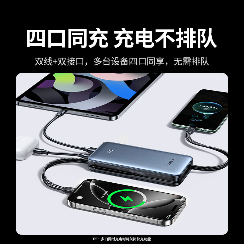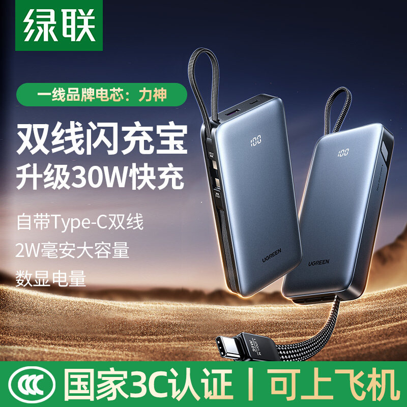 📚 【3C认证可上飞机】绿联2025新款充电宝自带双线20000毫安30W快充