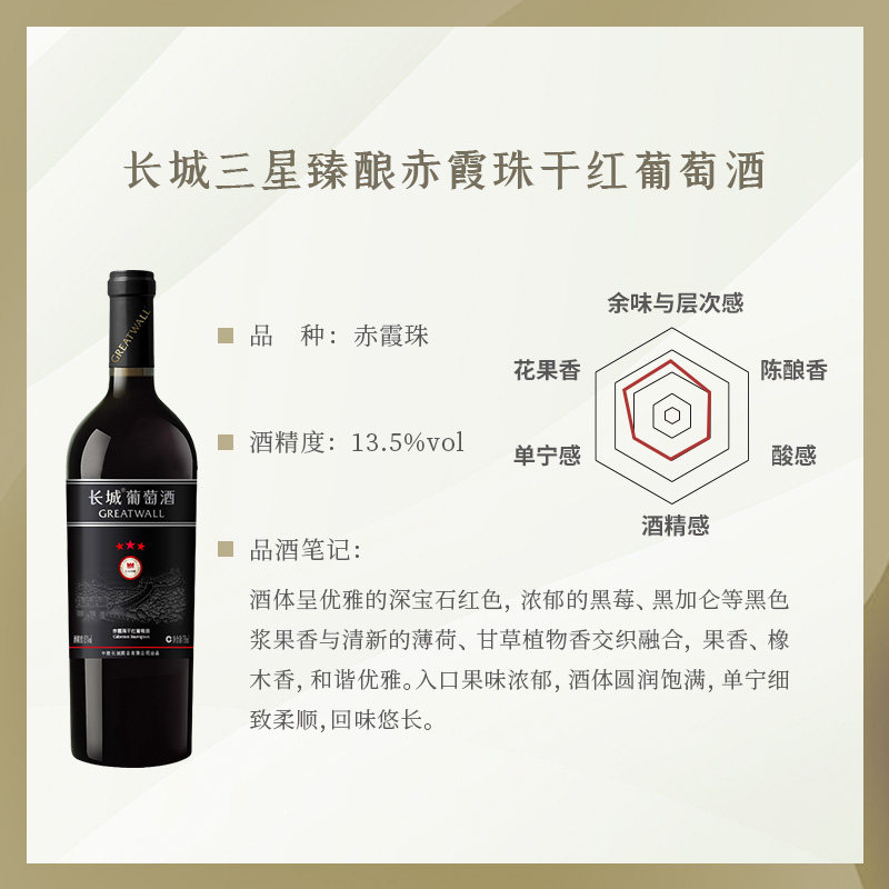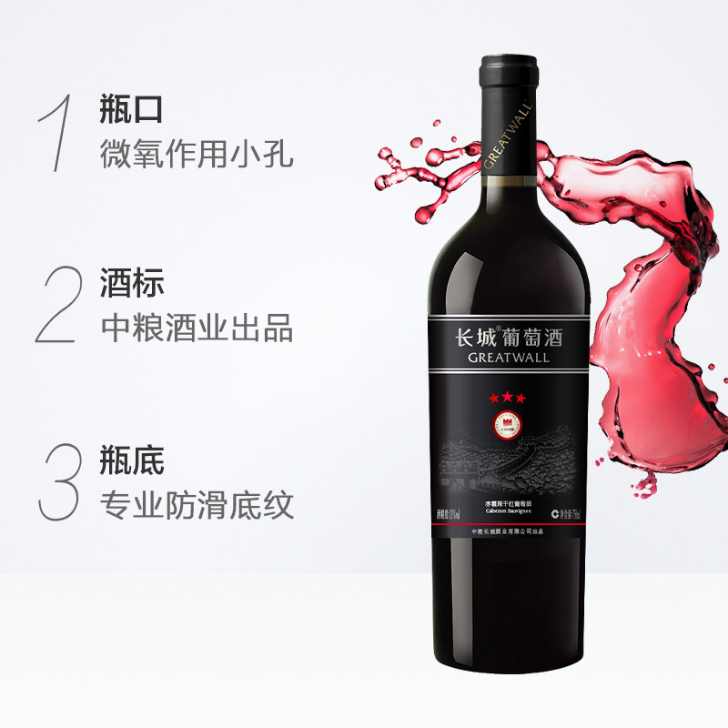 📚 Greatwall/长城干红葡萄酒红酒三星赤霞珠瓶整箱装婚宴请客送礼
