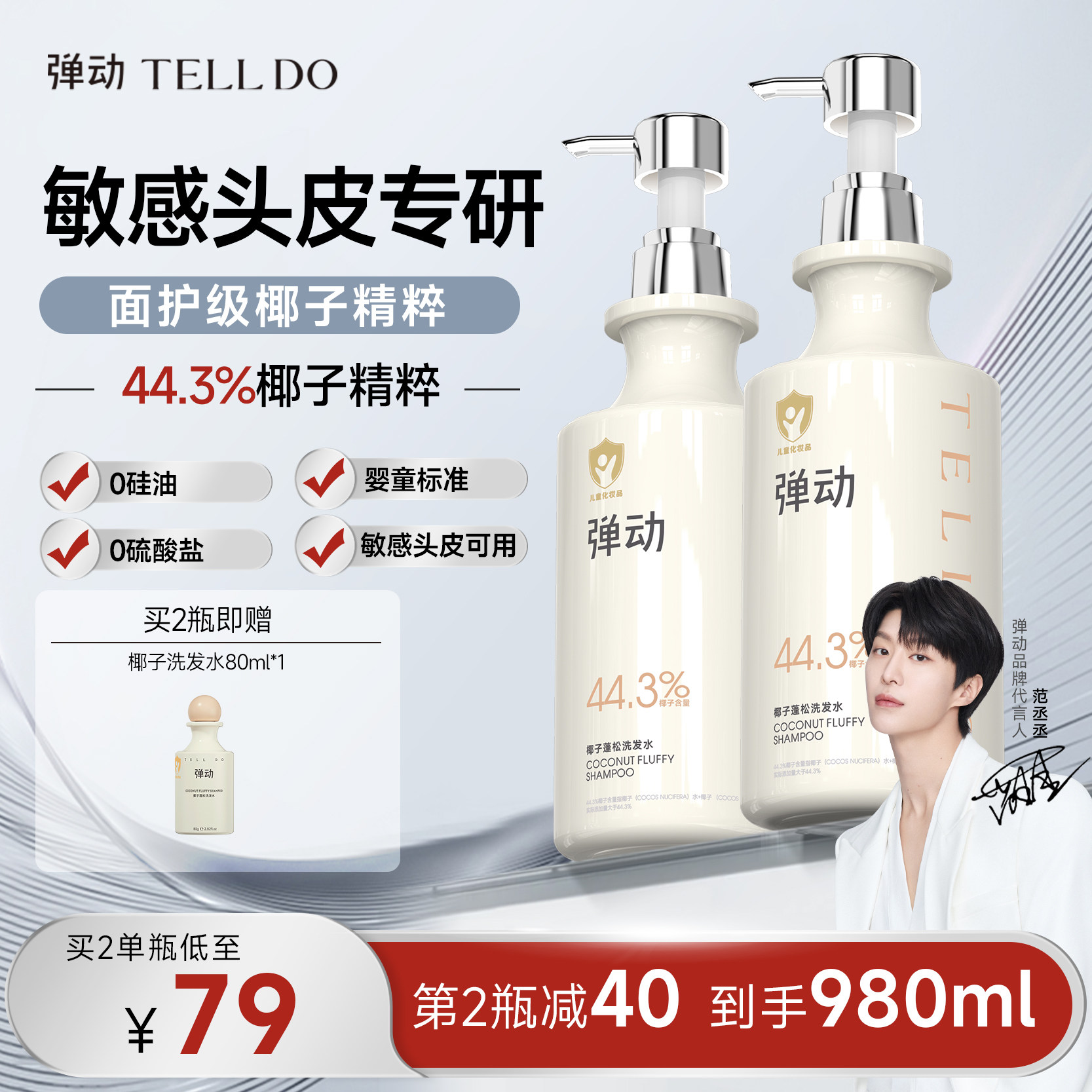 📚 弹动椰子蓬松洗发水温和清洁不辣眼控油蓬松高颅顶舒缓护发去屑女