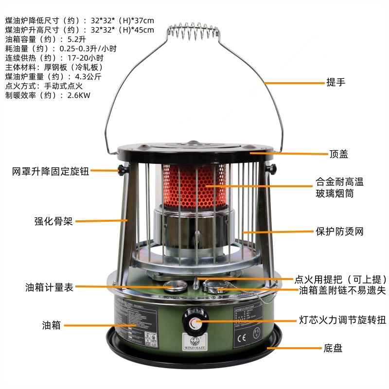 📚 出口韩国取暖炉户外煤油炉不插电罩帐篷家用室内无烟取暖器露营暖
