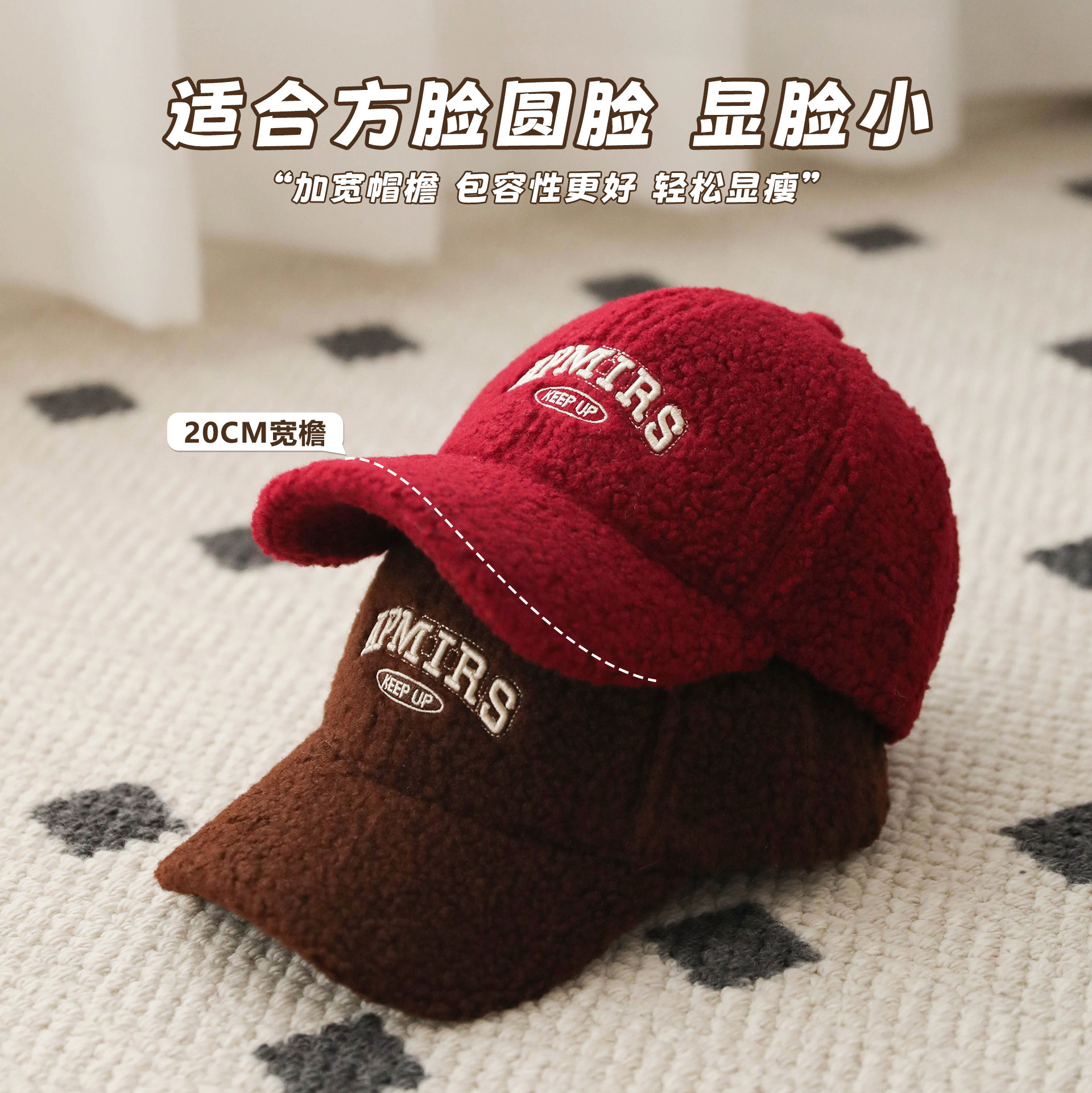 📚 显瘦显脸小硬顶棒球帽男女冬季加厚保暖羊羔绒鸭舌帽韩系休闲百搭