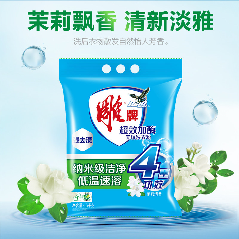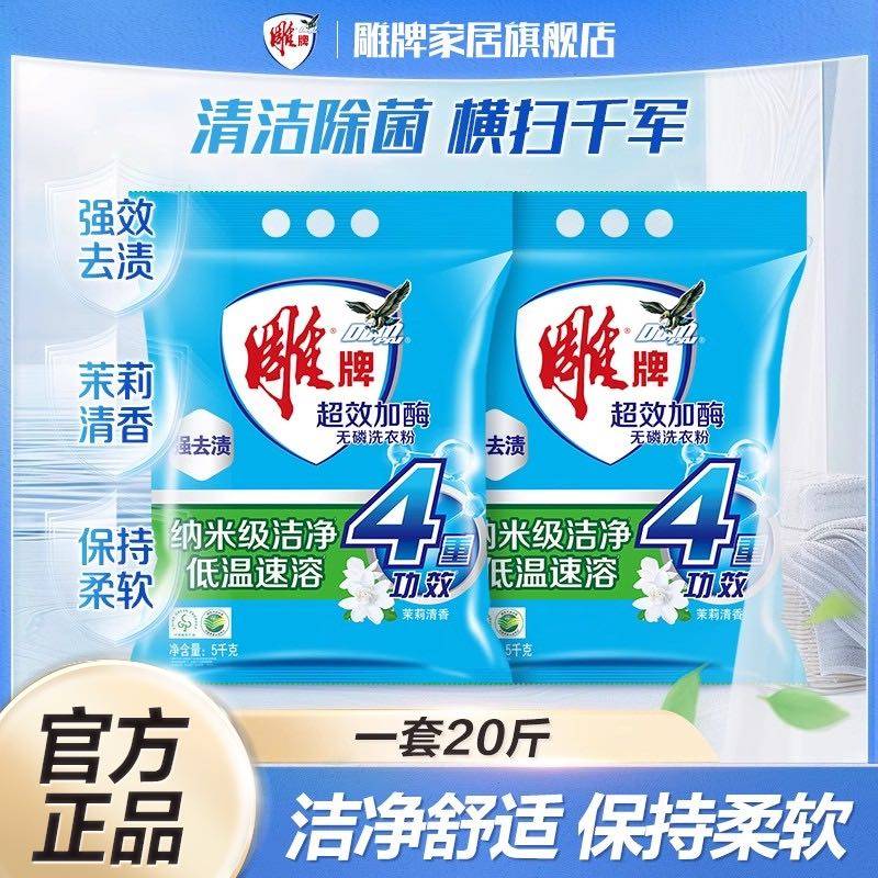 📚 雕牌洗衣粉20斤超效加酶无磷整箱家庭实惠装高效去污低温速溶家用