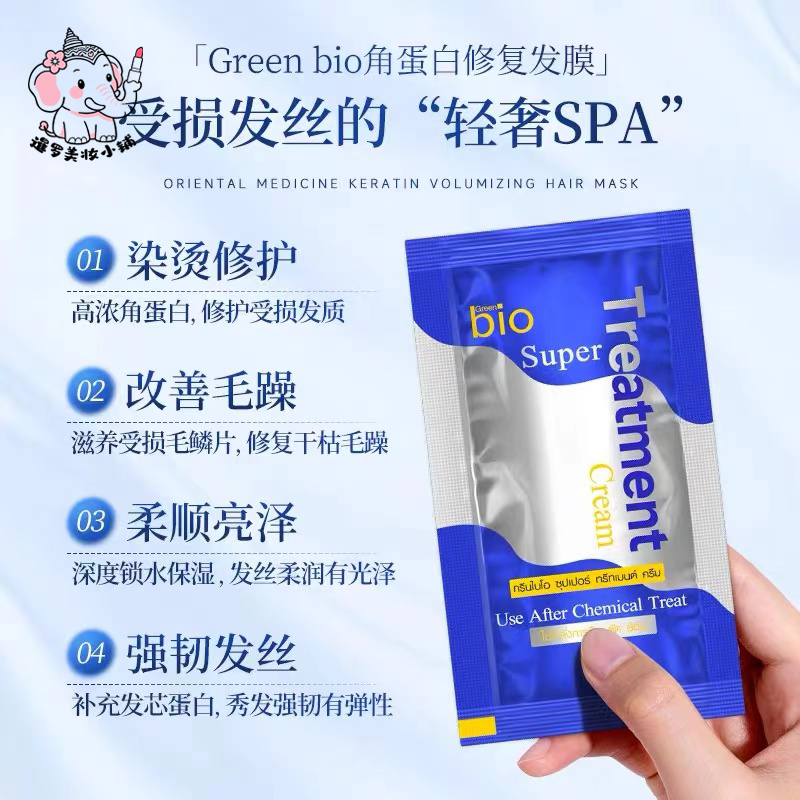 📚 泰国正品711便利店Green Bio发膜泰国超火发膜蓝色滋润烫染护发素
