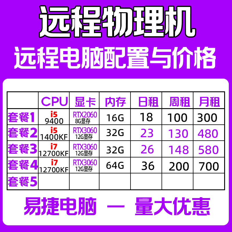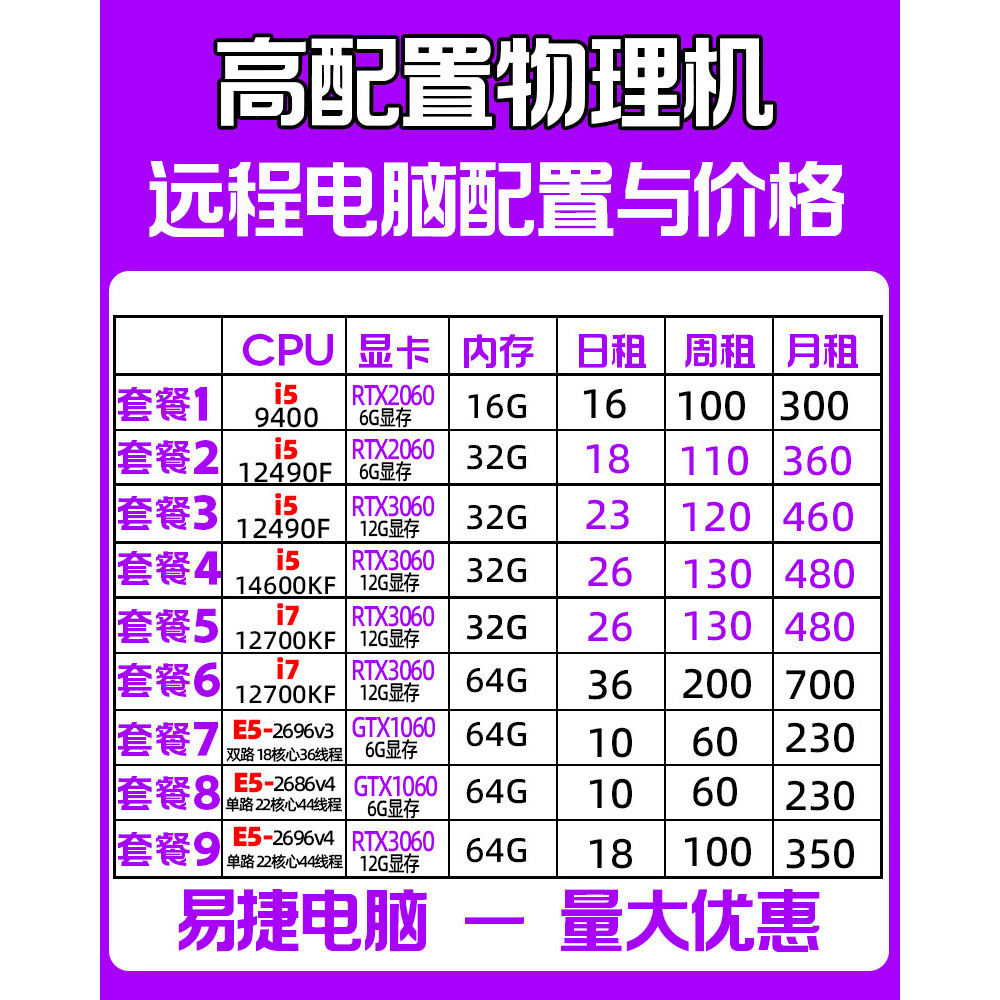 📚 i5电脑远程出租显卡3060真实物理主机渲染绘图建模i7游戏AI工作室