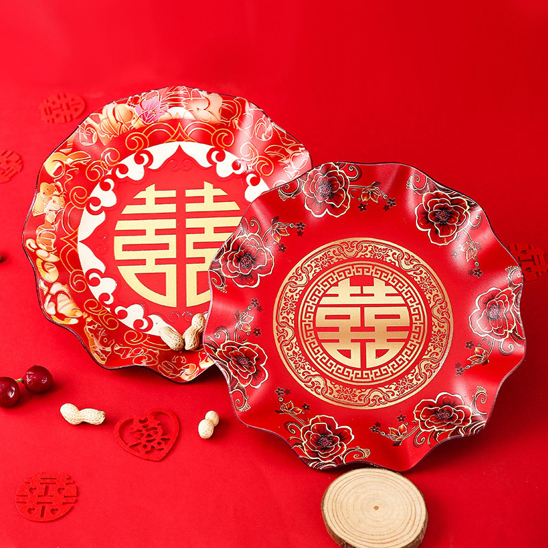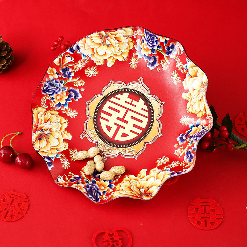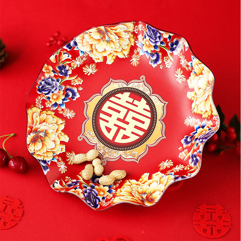 📚 新款糖果盘子红色喜庆结婚酒席花生瓜子盘新娘陪嫁婚庆用品水果盘