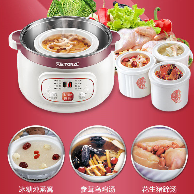 📚 天际炖锅电全自动不锈钢隔水电炖盅陶瓷煲汤燕窝炖盅BB煲一锅四胆