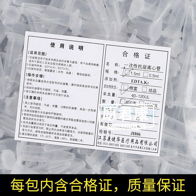 📚 子弹头雾化抗凝离心管0.5ml1.5毫升雾化含EDTAK2血球血常规分析用