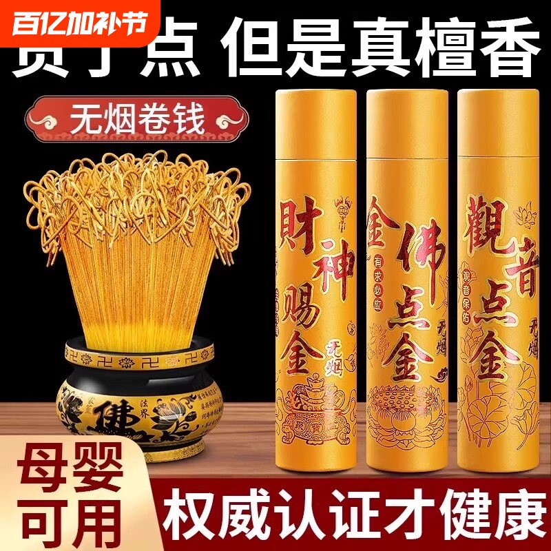 📚 无烟黄金卷钱香家用供香室内上香观音香拜佛烧香老山檀香沉香香火