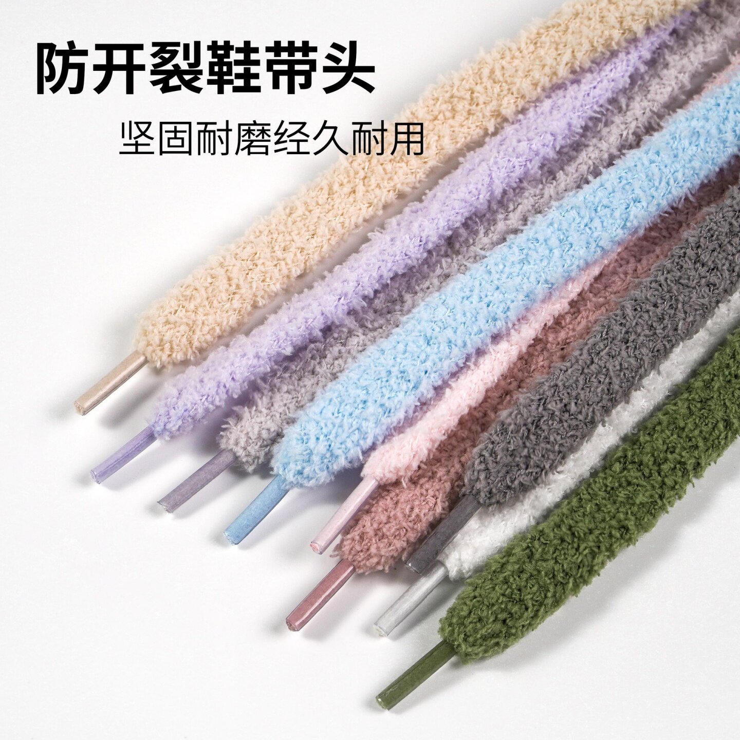 📚 1.3cm宽毛绒鞋带黑白彩色适配面包鞋板鞋帆布鞋男女毛毛虫鞋带绳