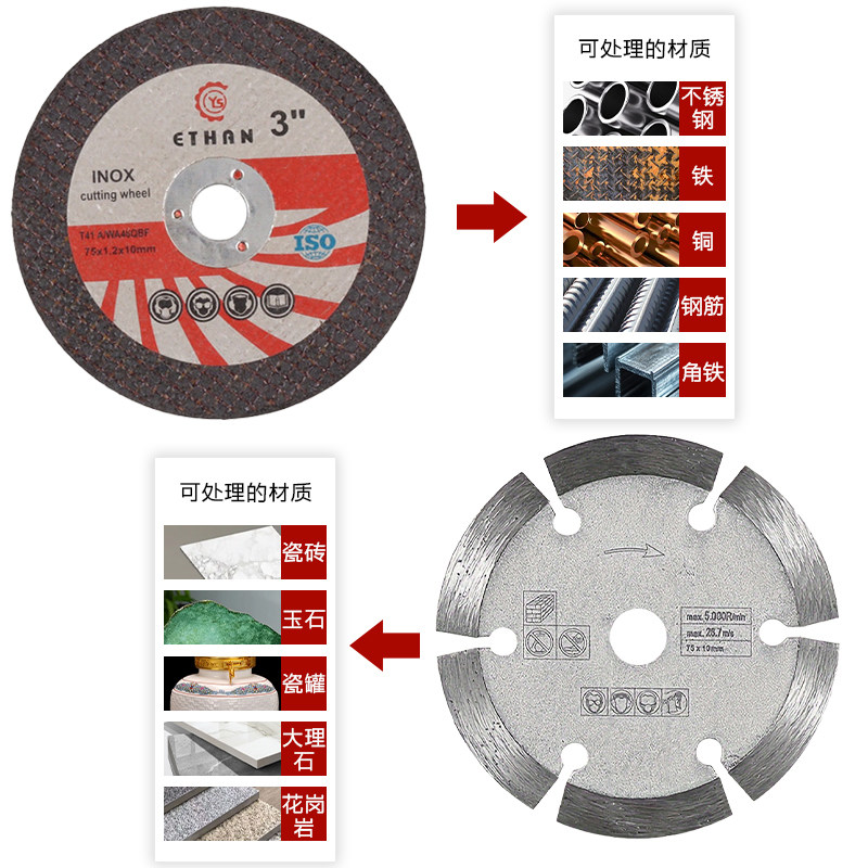 📚 迷你角磨机小型切割片75mm3寸锯片金属砂轮打磨片抛光片10mm内孔