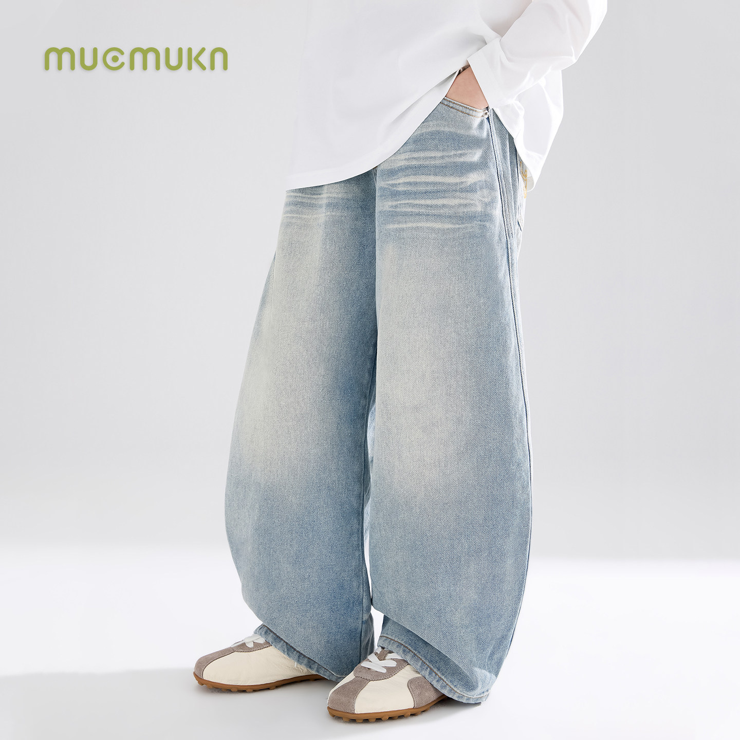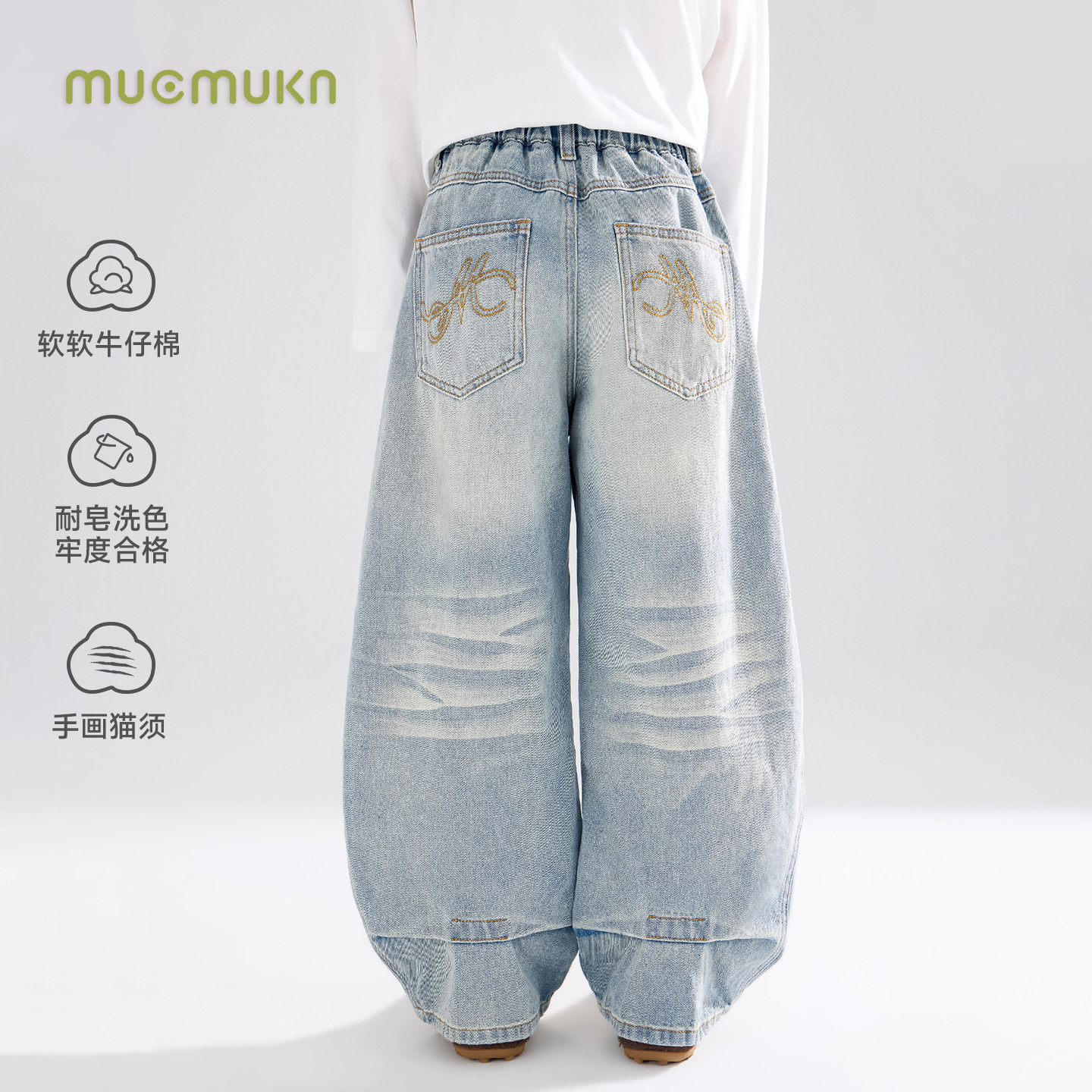 📚 MUCMUKN【开春百搭王】清爽盐系刺绣猫须弯刀牛仔裤男女童26春新
