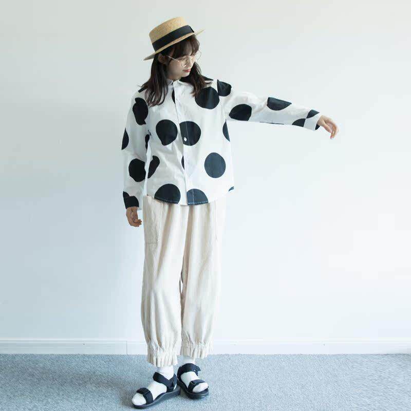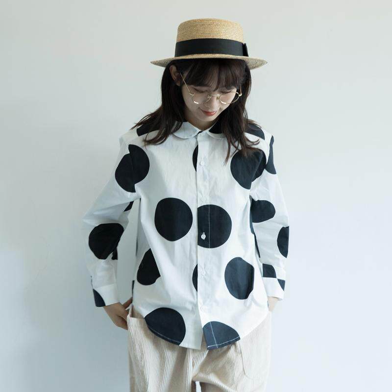 📚 hewu和物 原创设计 黑白大波点 水玉点 日系娃娃领 男朋友 棉衬衫