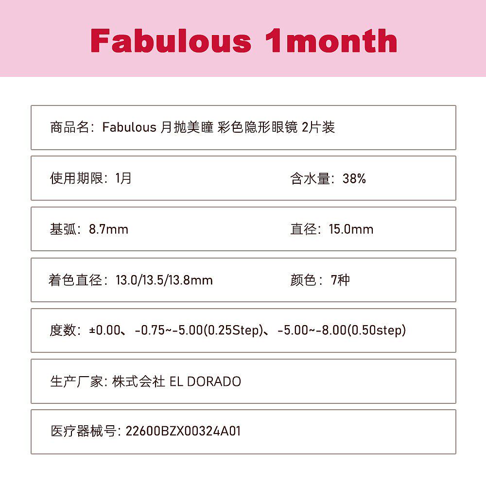 📚 日本直邮Fabulous 月抛美瞳 彩色隐形眼镜 2片装镜片水凝胶舒适