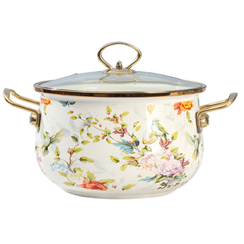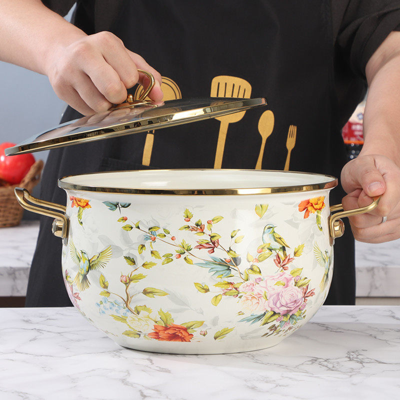 📚 到货18-30cm欧丽家珐琅搪瓷鸟语花香搪瓷双耳炖锅汤锅厚电炉燃气