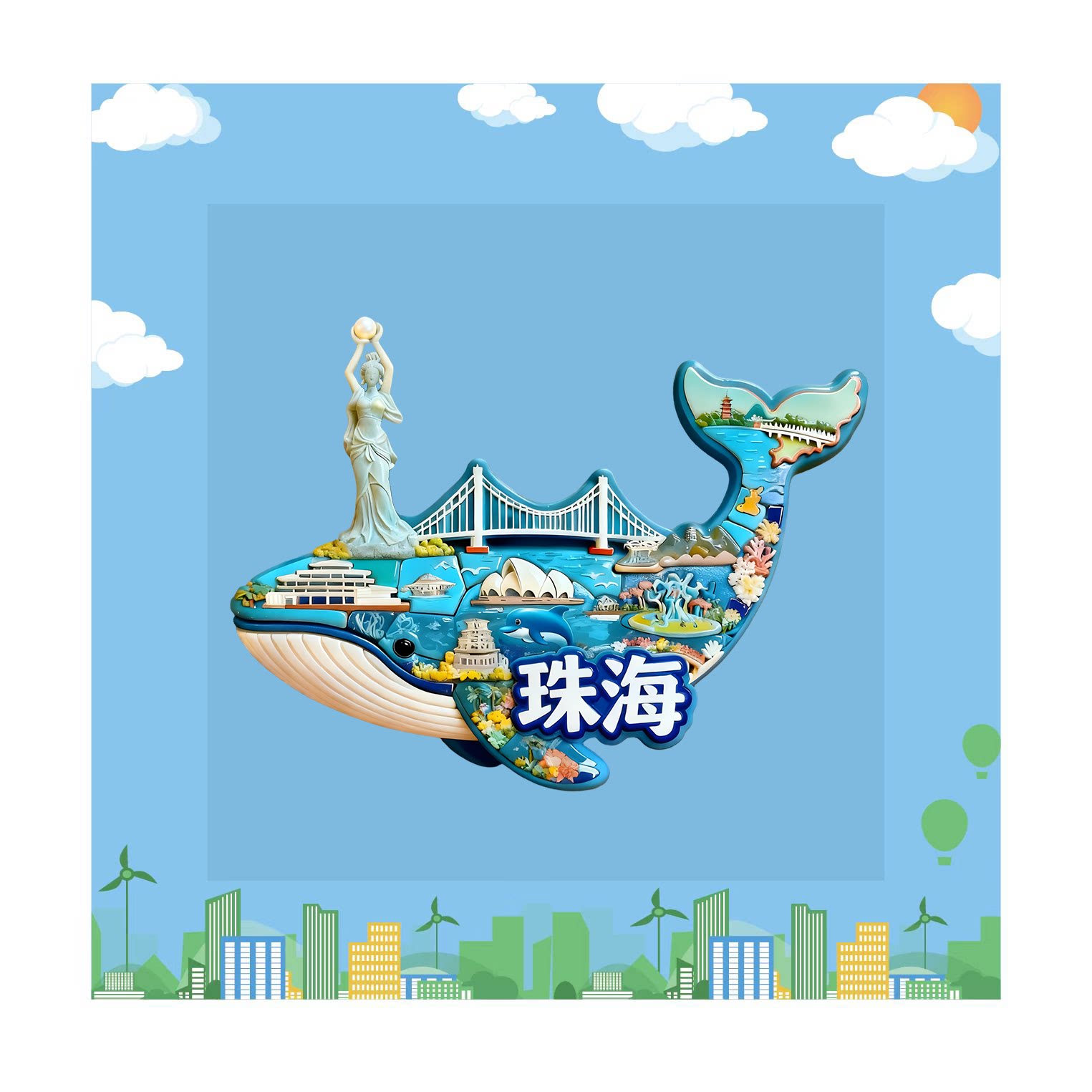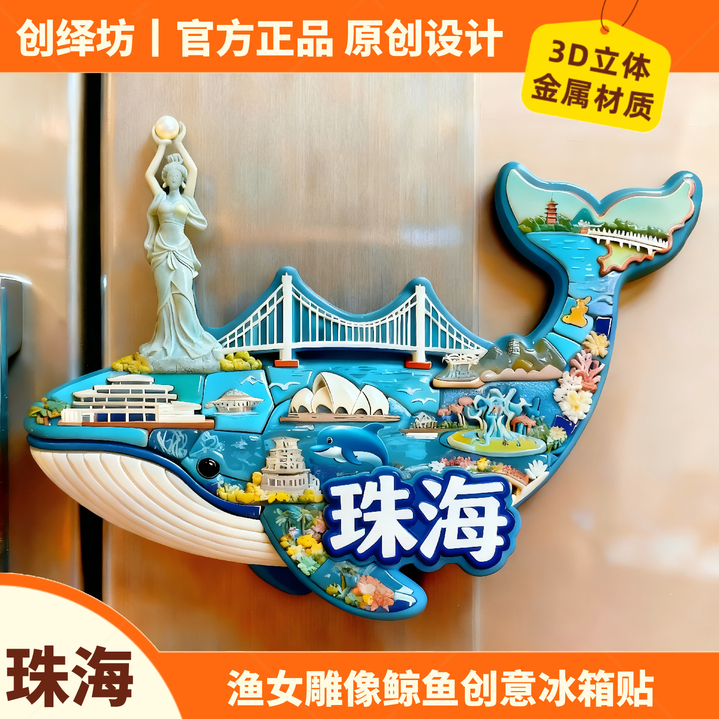 📚 珠海冰箱贴渔女雕像日月贝文创旅游景点纪念品伴手礼送朋友礼物