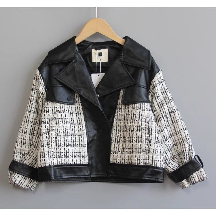 📚 T芙系列120/130秋冬Ⅱ品牌童装折扣/儿童休闲上衣拼接皮衣83015黑
