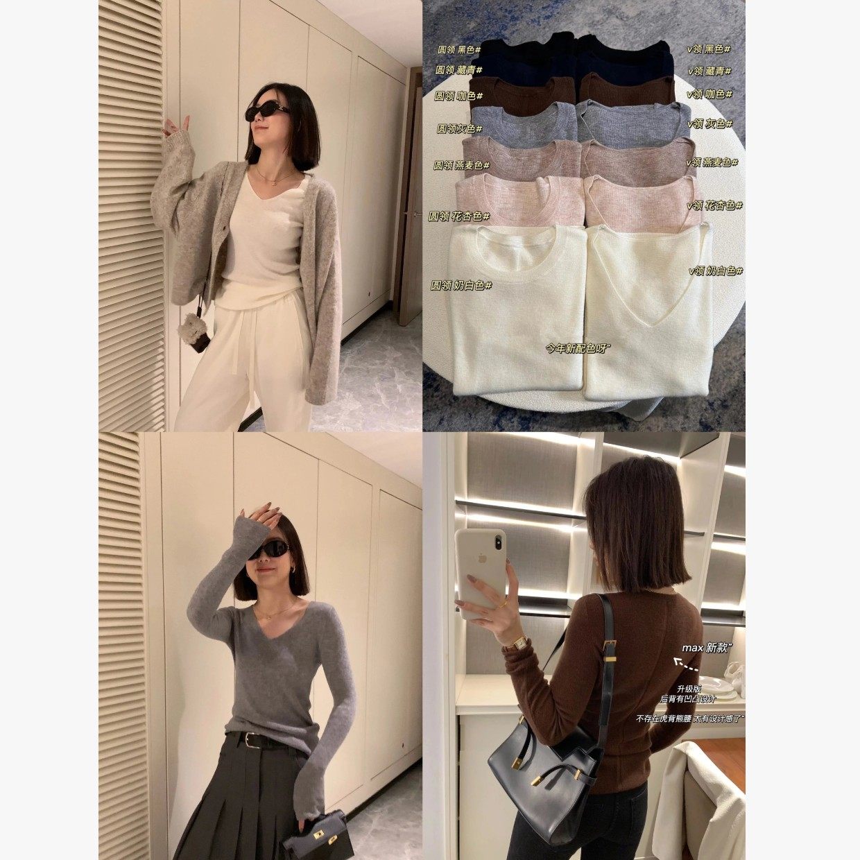 📚 max口碑款!后背凹凸拼条~德国扬子纱羊毛~圆领/V领针织打底衫