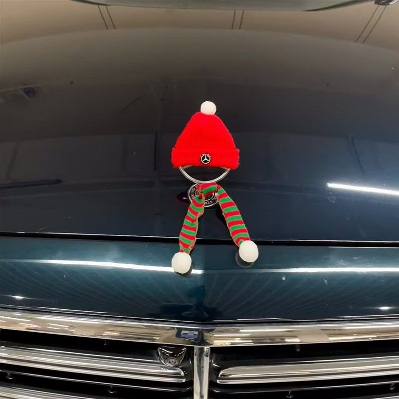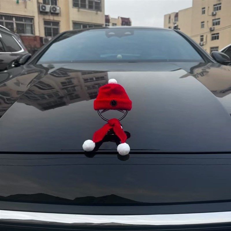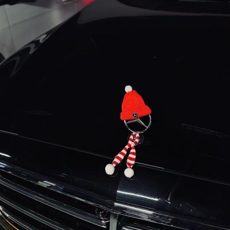 📚 奔驰立标帽子可爱圣诞帽围巾奔驰E奔驰S车标装饰品新年车载小挂件