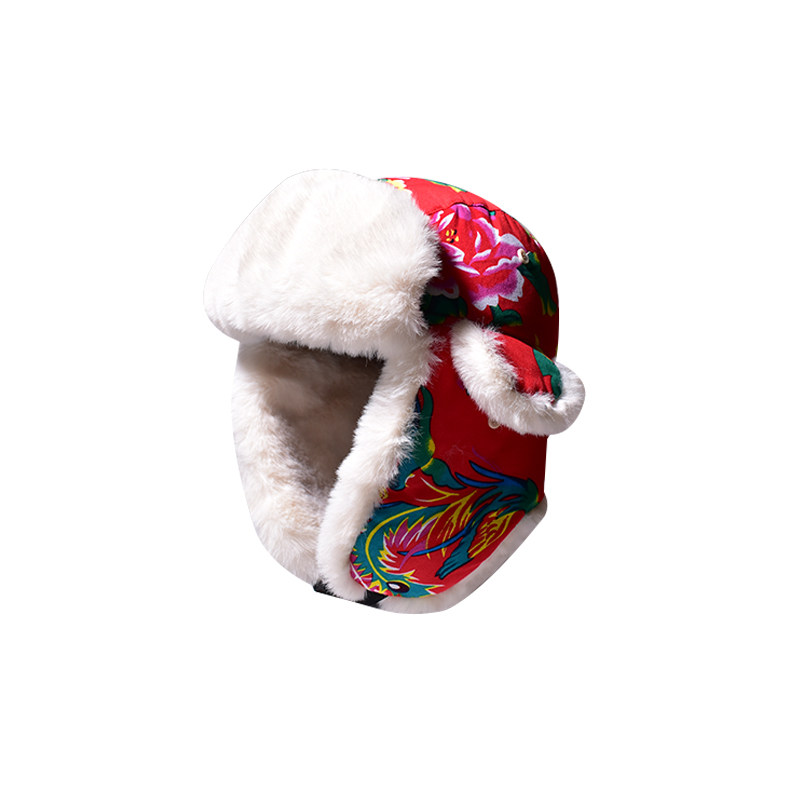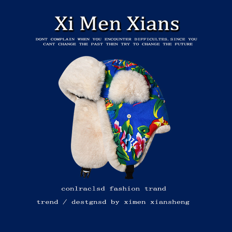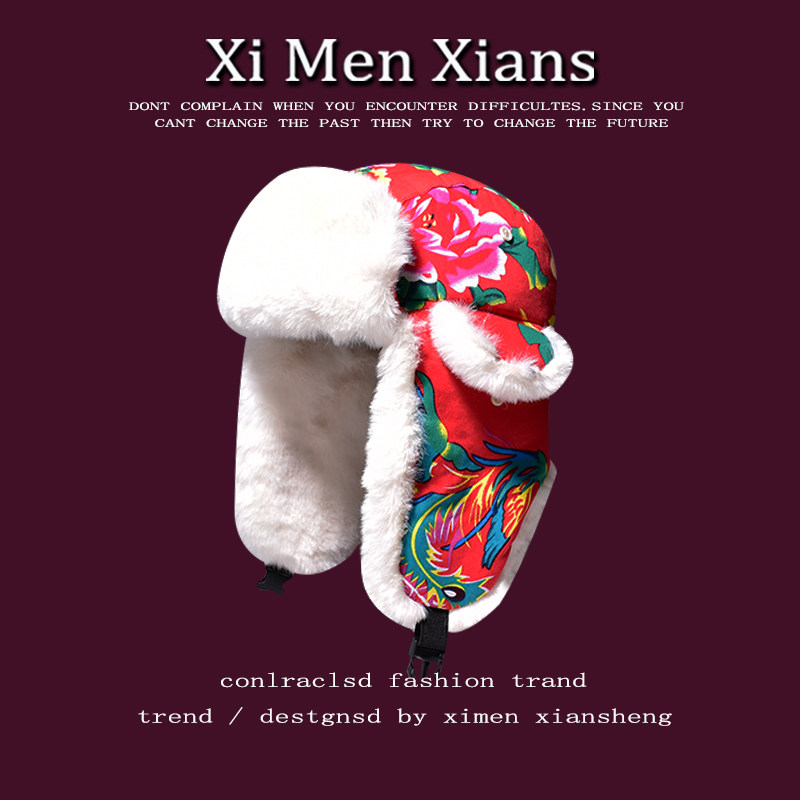 📚 东北大花棉布雷锋帽子男女冬季网红保暖护耳防寒防风民族风加厚
