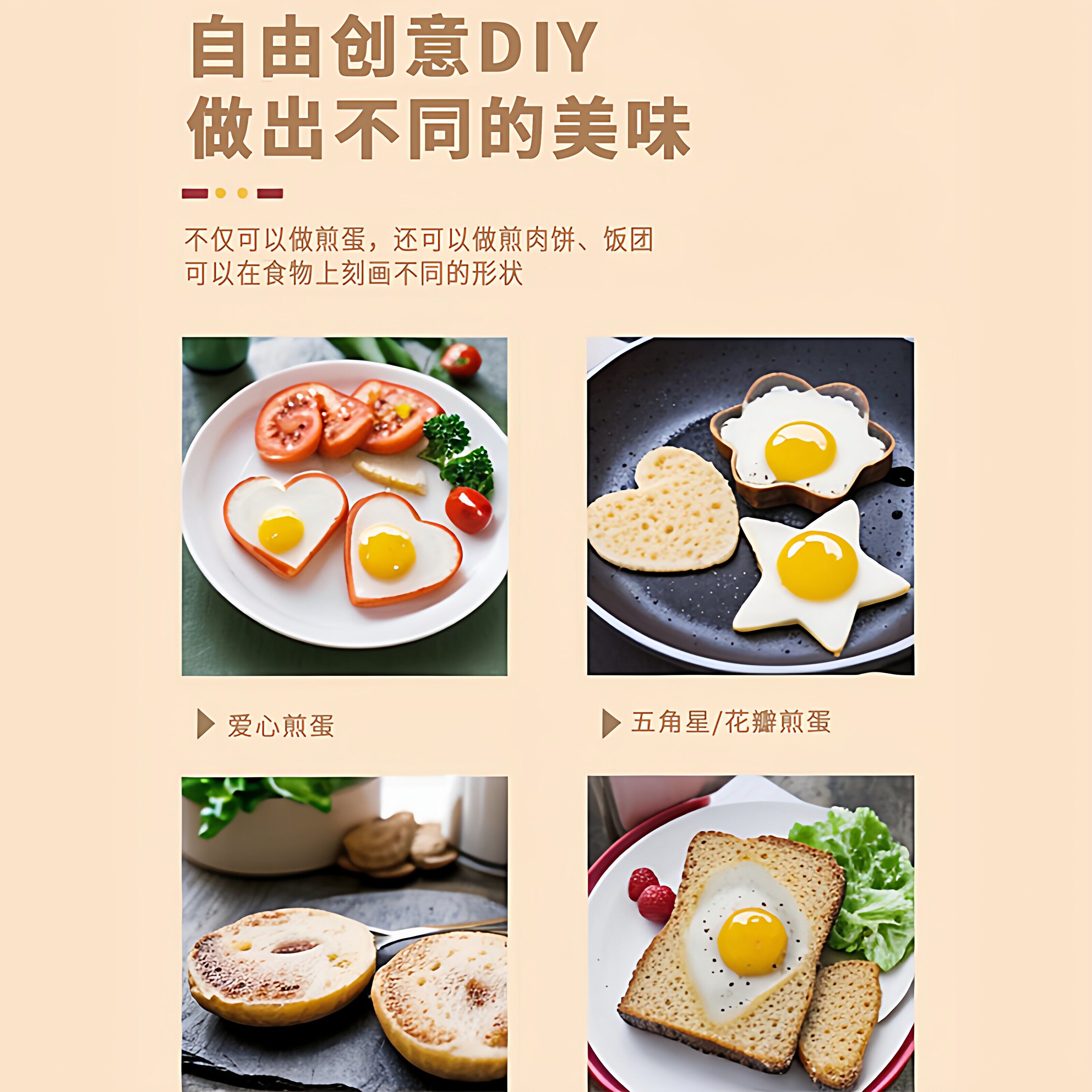 📚 煎蛋模具煎蛋器家用不锈钢煎鸡蛋工具模型爱心形荷包蛋饭团磨具套