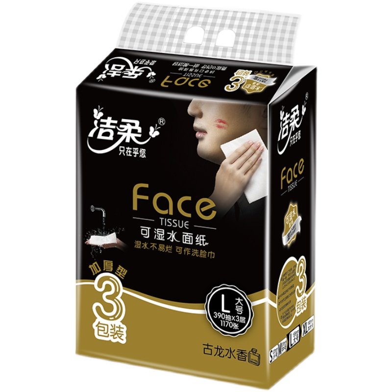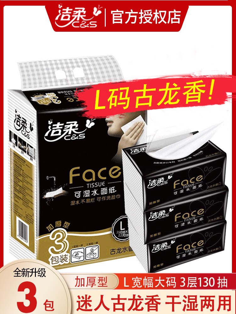 📚 洁柔大号抽纸3包古龙水香味纸巾3层130抽可湿水面巾纸家用餐巾纸