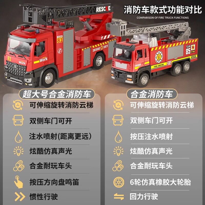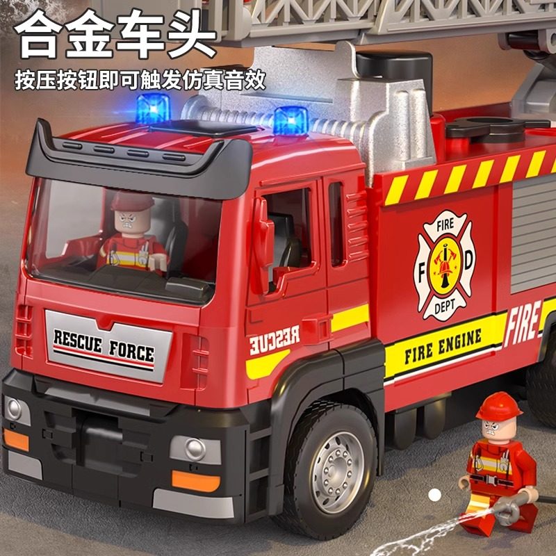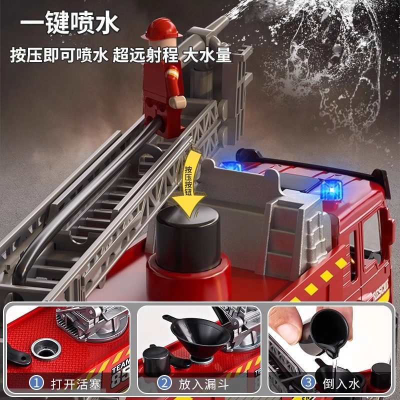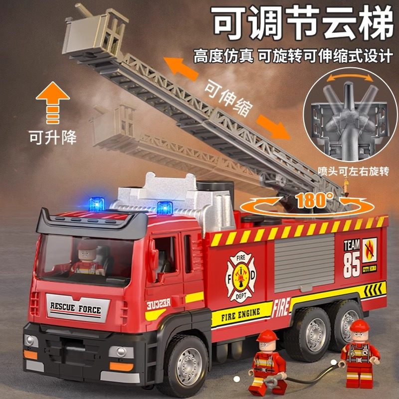 📚 大号玩具消防车合金可喷水洒水消防员玩具车儿童云梯车模型男孩