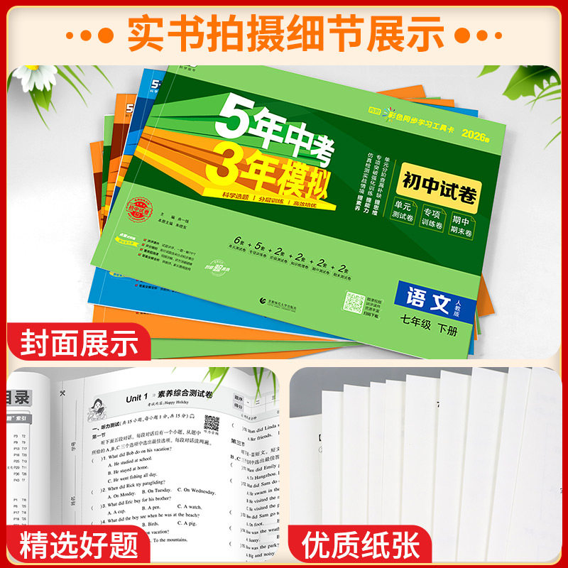 这款'2026春五年中考三年模拟七年级上册测试卷全套八九上下册'真的是我近期的心头好。券后价只需22.2元,性价比超高!如果你也是即将参加中考的学生,或者想要在期末复习中查漏补缺,不妨试试这款资料,相信它会给你带来很大的帮助。