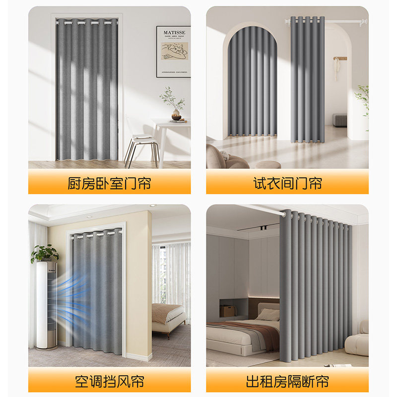 📚 免打孔定制布艺门帘空调隔断帘子卧室房间遮挡帘防冷气家用布帘