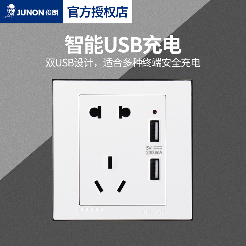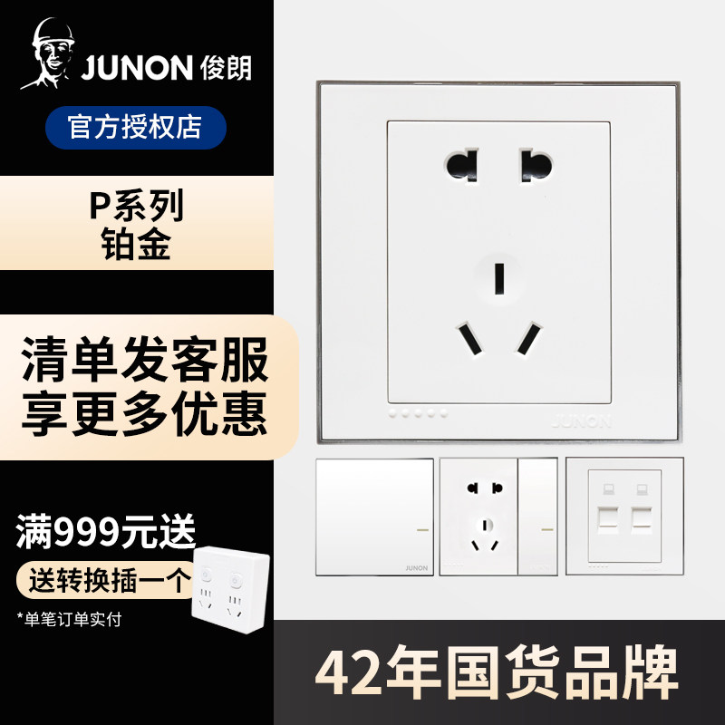 📚 广东俊朗P系列铂金开关套装一开五孔插座多孔面板usb充电86型暗装