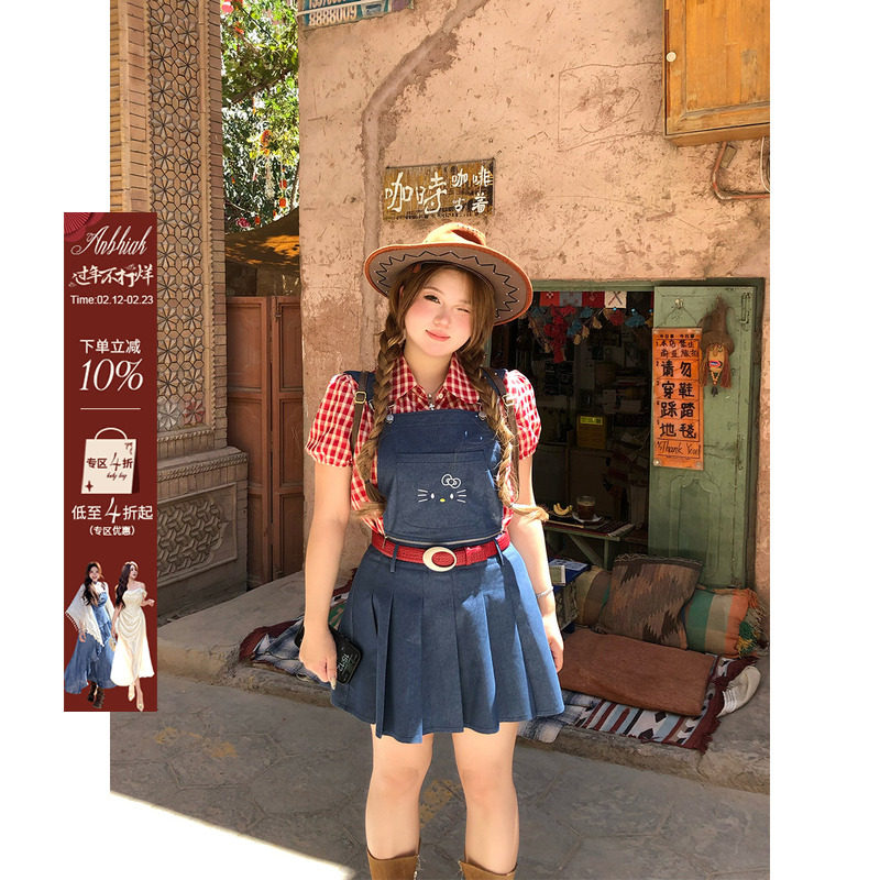 📚 安妮不火 古城爱丽丝一衣多穿kt刺绣背带裙女微胖大码可爱收腰裙