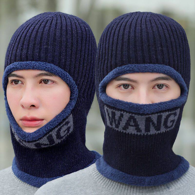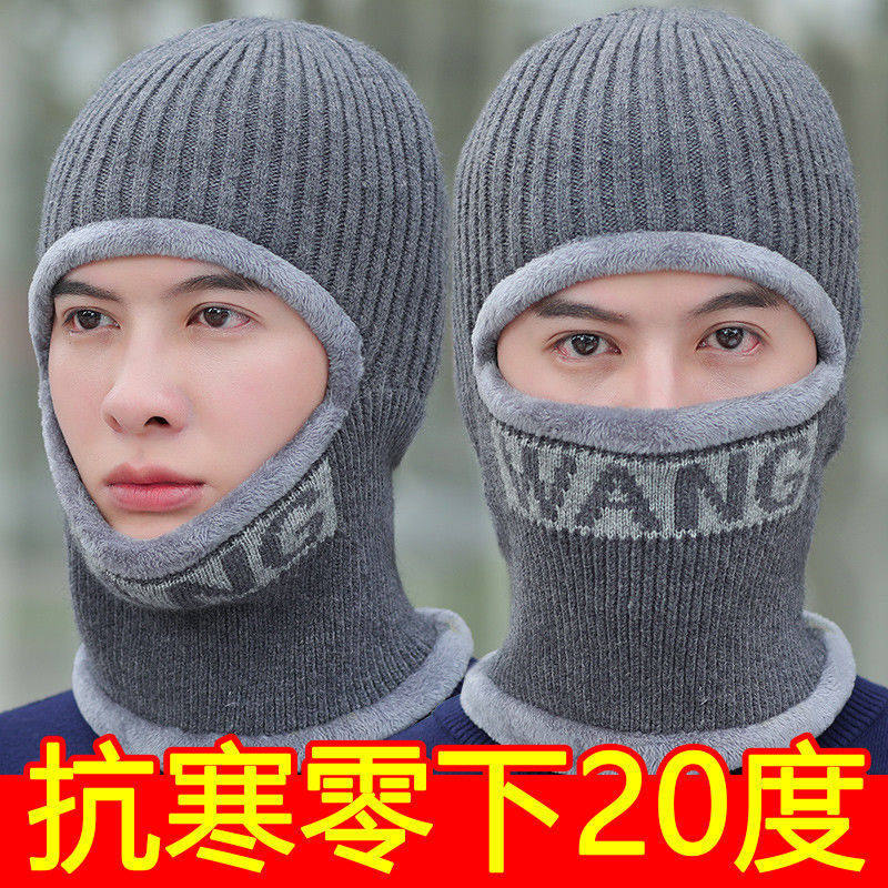 📚 男士帽子秋冬季保暖加绒加厚毛线帽女韩版冬天防风骑车连体套头帽