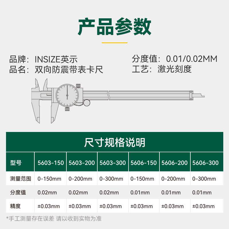 📚 英示INSIZE带表卡尺高精度150-200-300mm代表游标卡尺