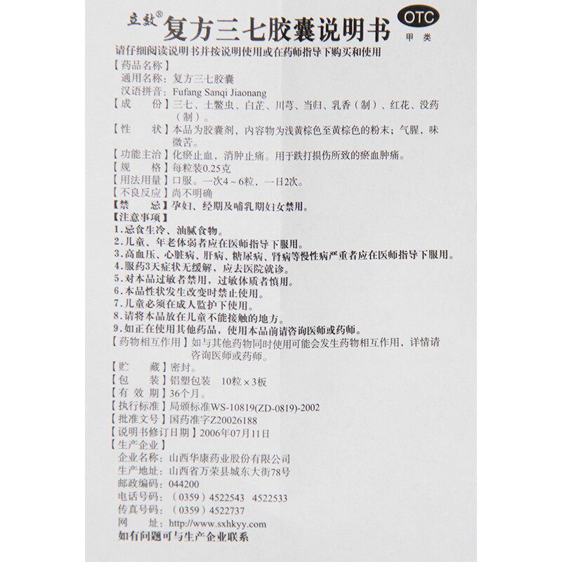 📚 立效 复方三七胶囊 0.25g*30粒/盒用于跌打损伤所致的淤血肿痛GD