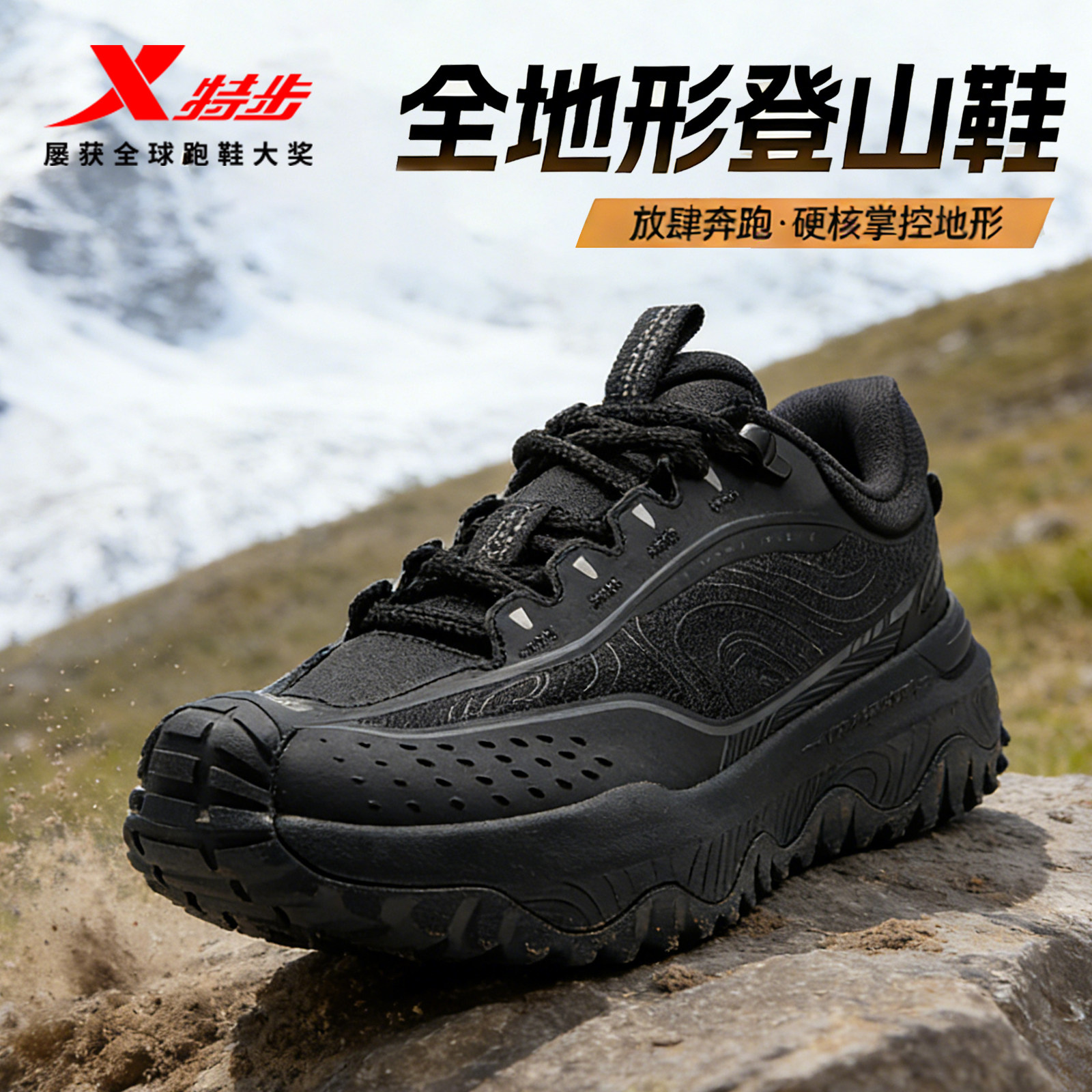 📚 特步飞石3.0丨徒步户外鞋男黑色耐磨防滑越野运动鞋休闲鞋登山鞋