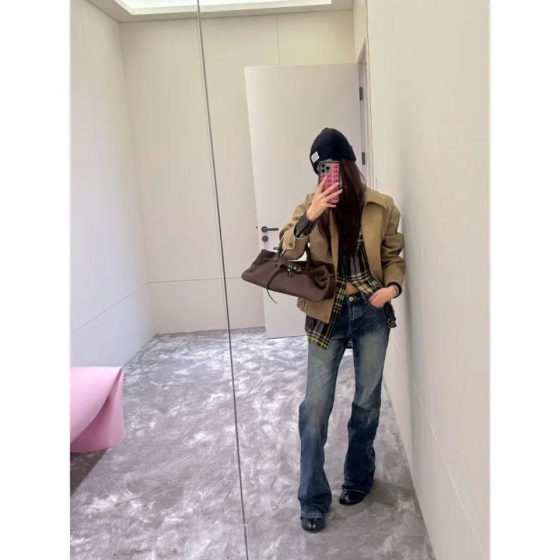 57¥ HU293 oDYCUMB4KG6¥ https://m.tb.cn/h.7Cx3ctw SUNONEONE 复古压褶修身低腰微喇牛仔裤女秋2025新款磨白休闲裤子 --------------------- 【原售价】146元 【现售价】146元。