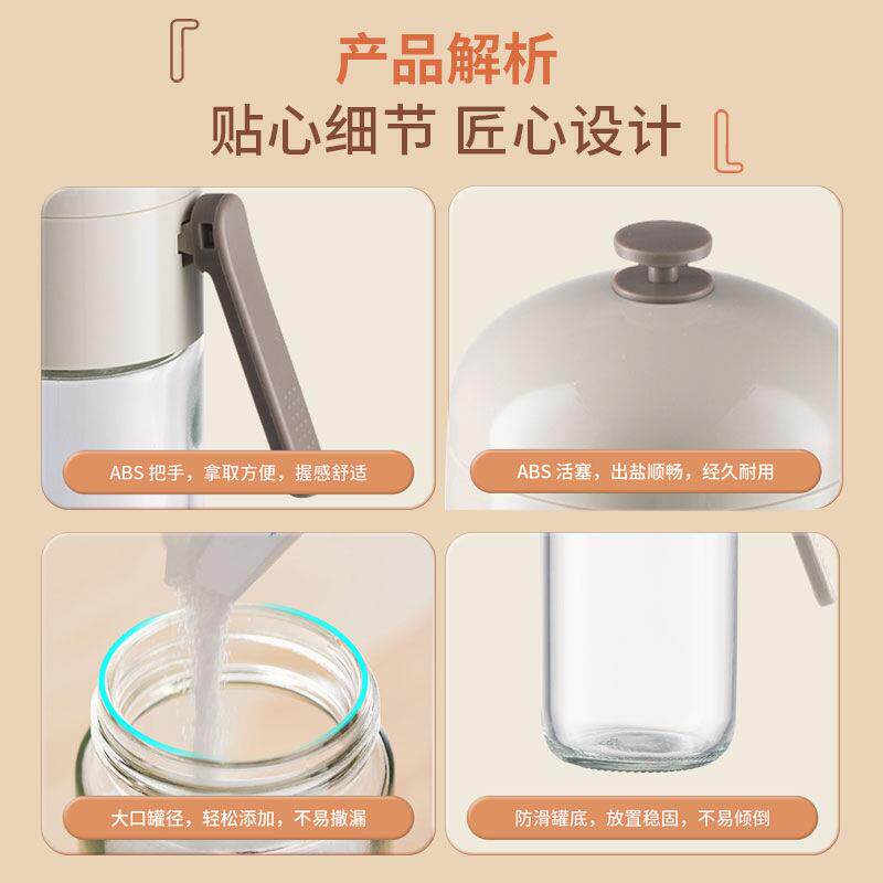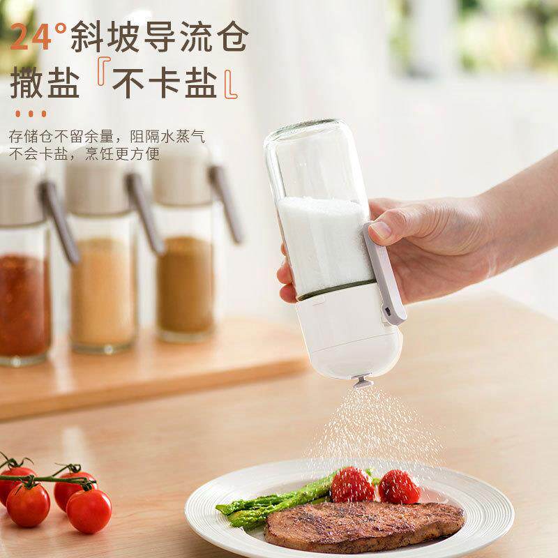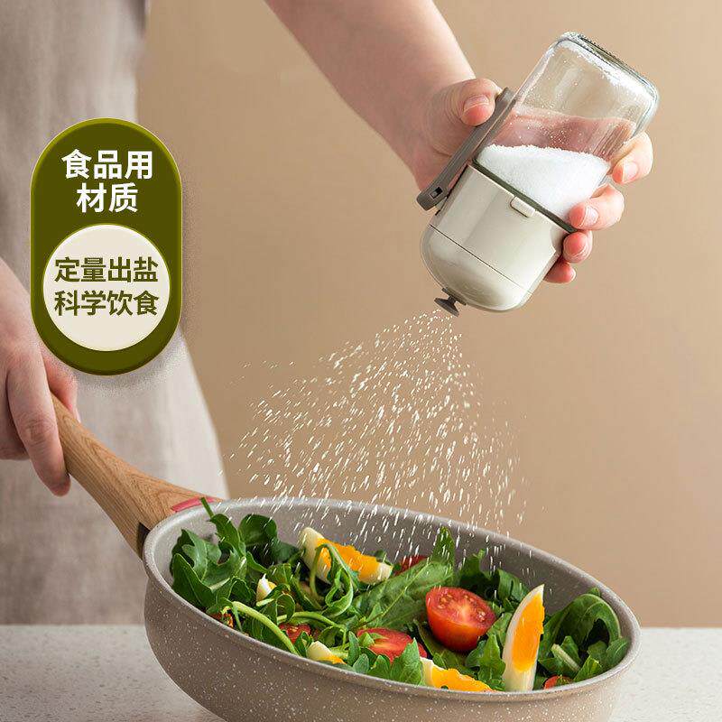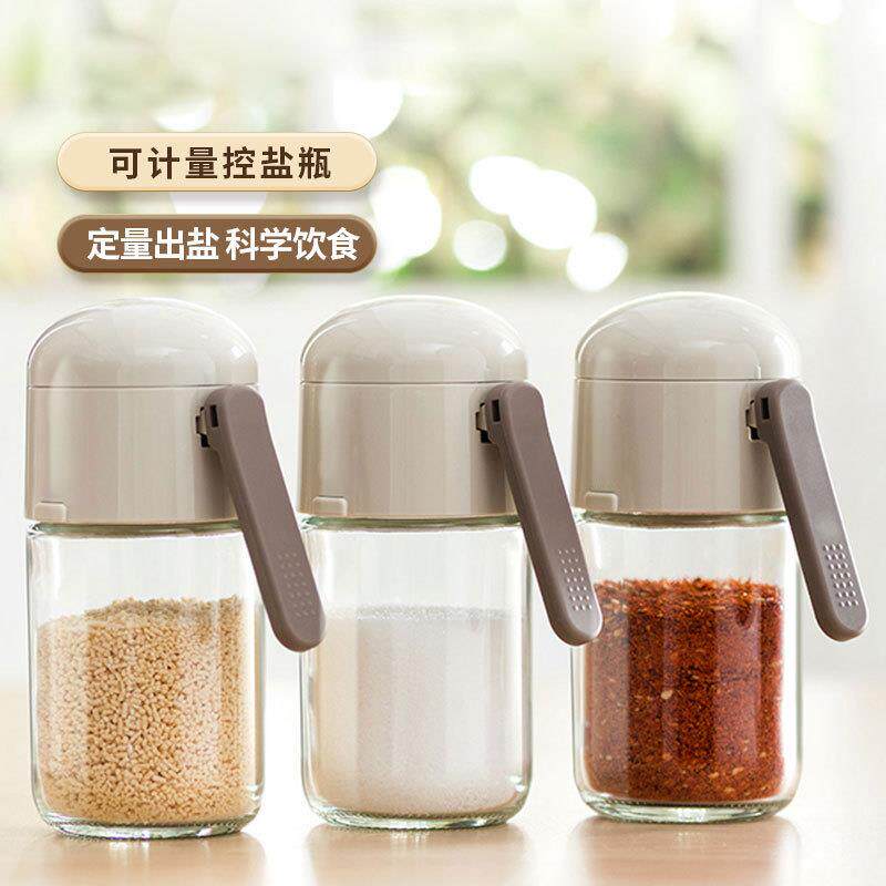 📚 定量盐罐家用玻璃调料瓶厨房控量撒盐器按压式控盐瓶密封调味罐
