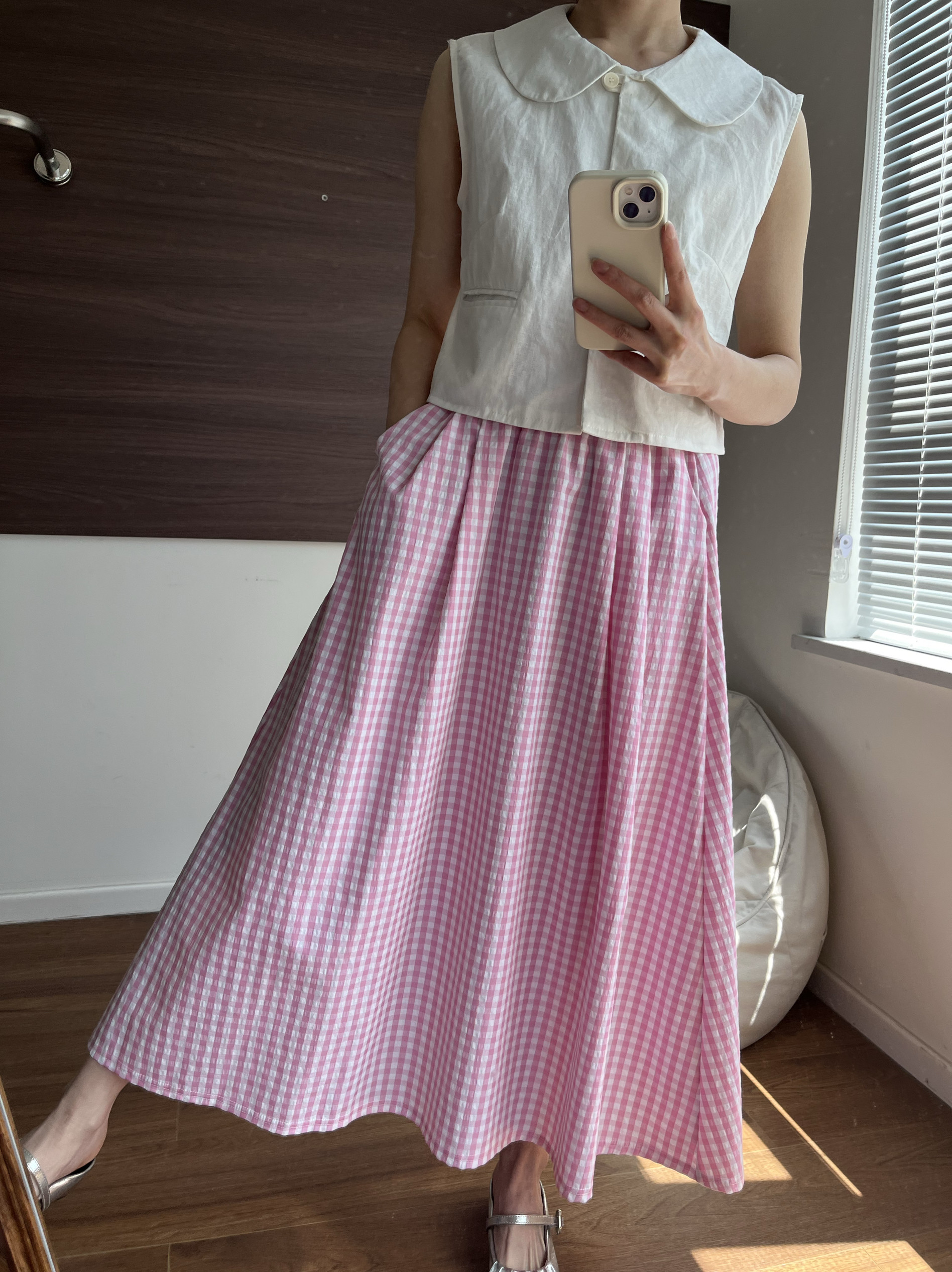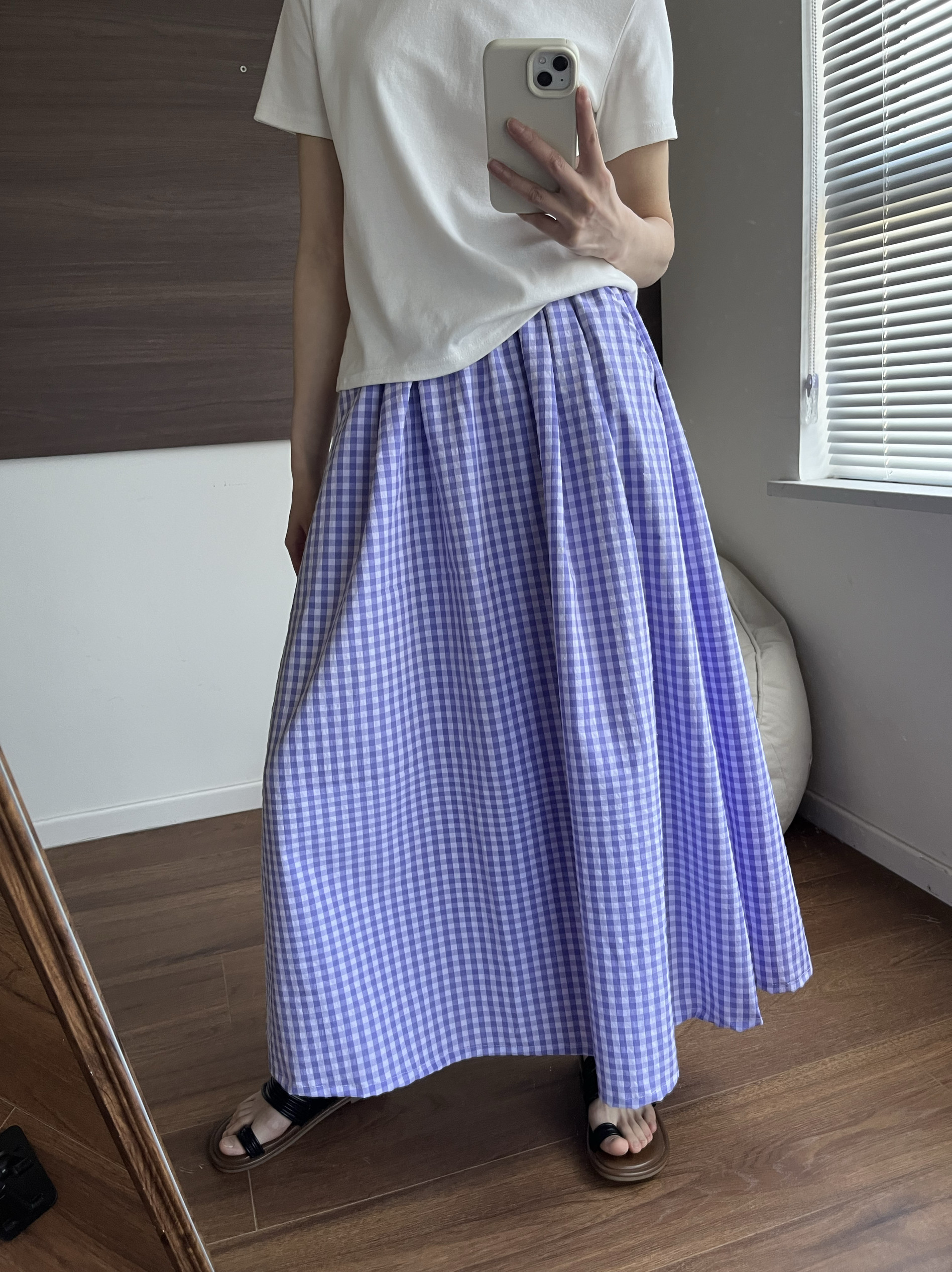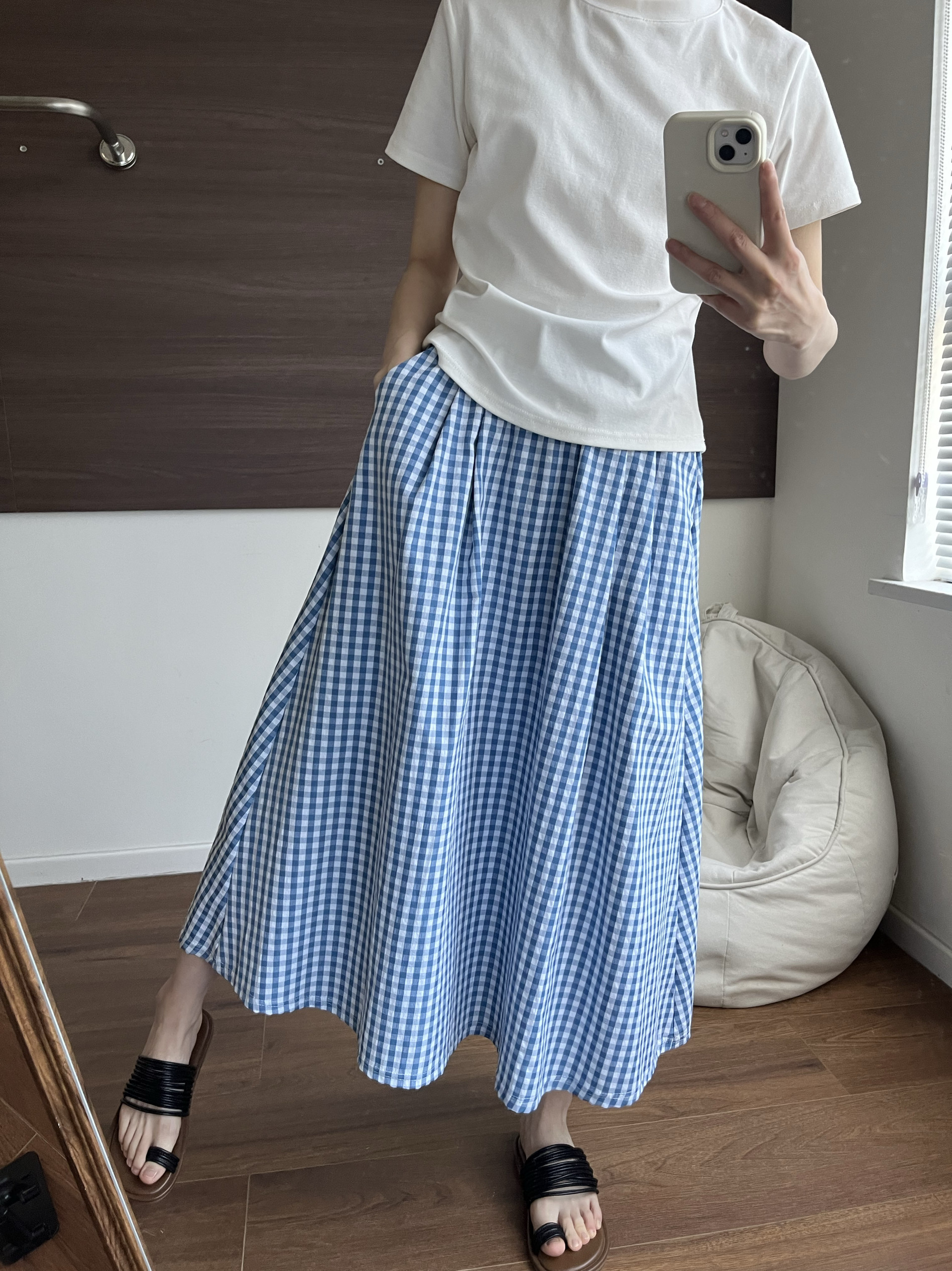 📚 少女清新盐系蓝色格子半身裙学院风a字长裙宽松高腰春夏气质百搭