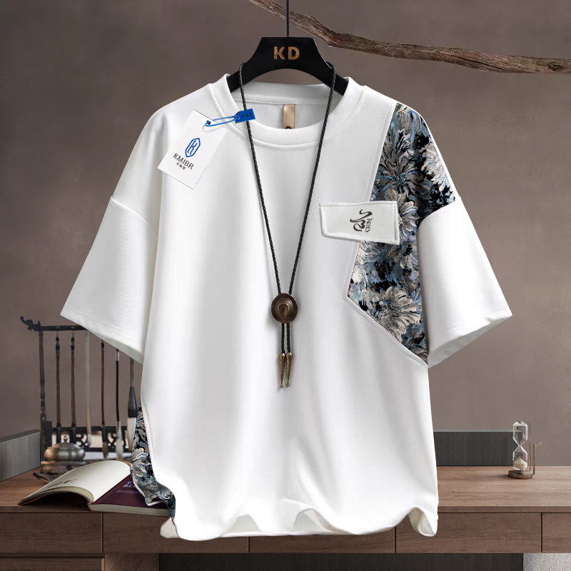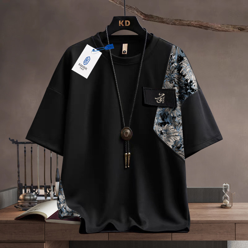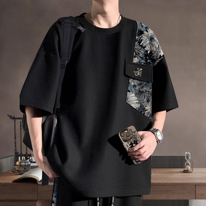 📚 新中式男装短袖t恤套装男士夏季2026新款轻国风宽松男生一套搭配